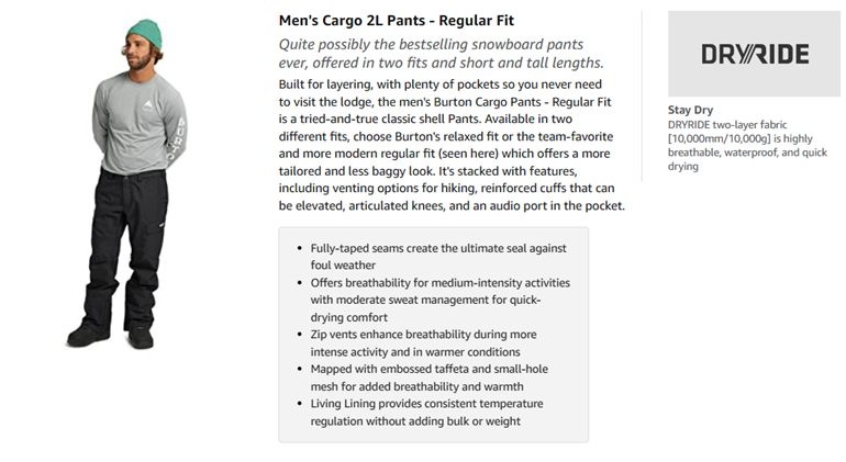 - DRYRIDE two-layer fabric [10,000MM, 10,000G] is waterproof and breathable for outstanding weather protection; Fully taped seams seal out foul weather
