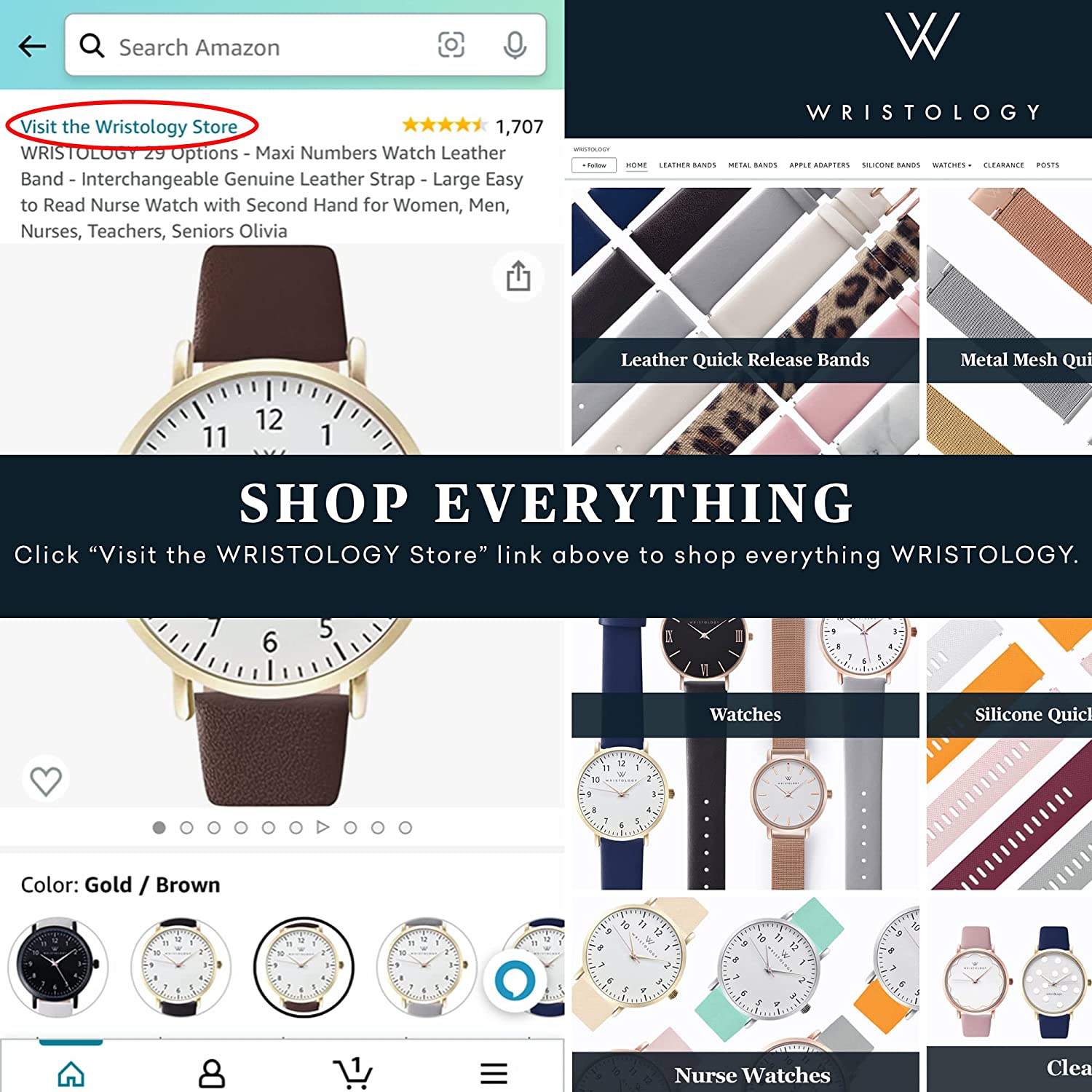 Wristology 29 Options - Maxi Leather Band Roman Numerals Boyfriend Watch - Interchangeable Genuine Leather Strap - Large Easy to Read Analog Face for Women or Men