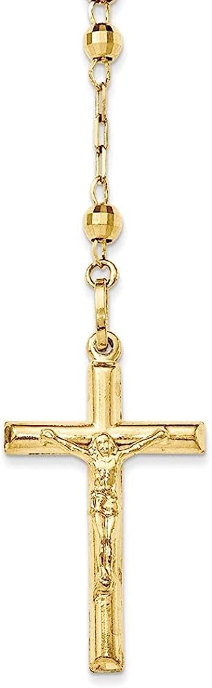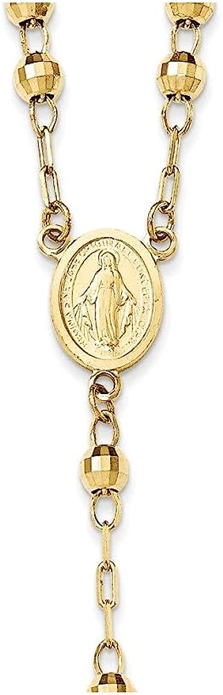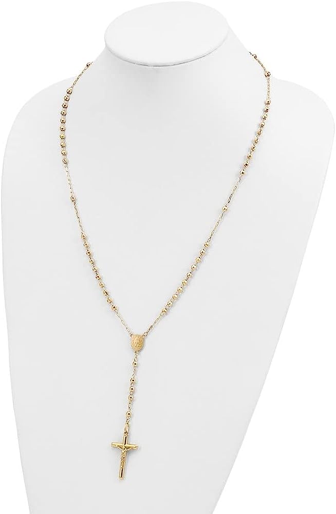 • PREMIUM QUALITY - 14k Yellow Gold Diamond cut Y Virgin Mary Beaded Rosary Cross Pendant Necklace for Women Elegantly Crafted in Highest Quality for Luxurious Shine and Feel