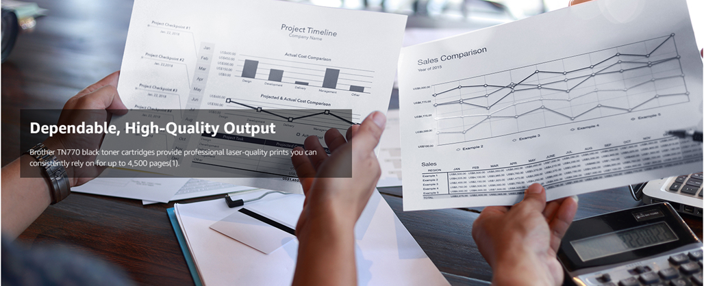Brother Genuine TN770 monochrome laser toner cartridge delivers consistent, professional mono laser print quality with up to 4,500-page yield. Brother Genuine toner is intelligently engineered to work seamlessly with your Brother Printer to reliably produce crisp prints that withstand the test of time. Only Brother Genuine toner will provide print results that you can be consistently proud of. Using Brother Genuine supplies delivers peak performance and high-quality prints. Brother offers an environmentally responsible way for customers to recycle Brother Genuine cartridges at end of life.For use with: HLL2370DW, HLL2370DW XL, MFCL2750DW, MFCL2750DW XL.