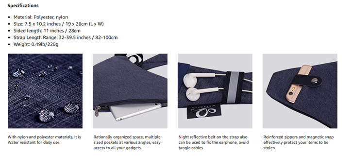 • Unique Design: There is a small pocket on the strap for cards storing and a reflective belt for easy seen in the dark; This sling bag is slim enough to concealed carry under your coat or suit