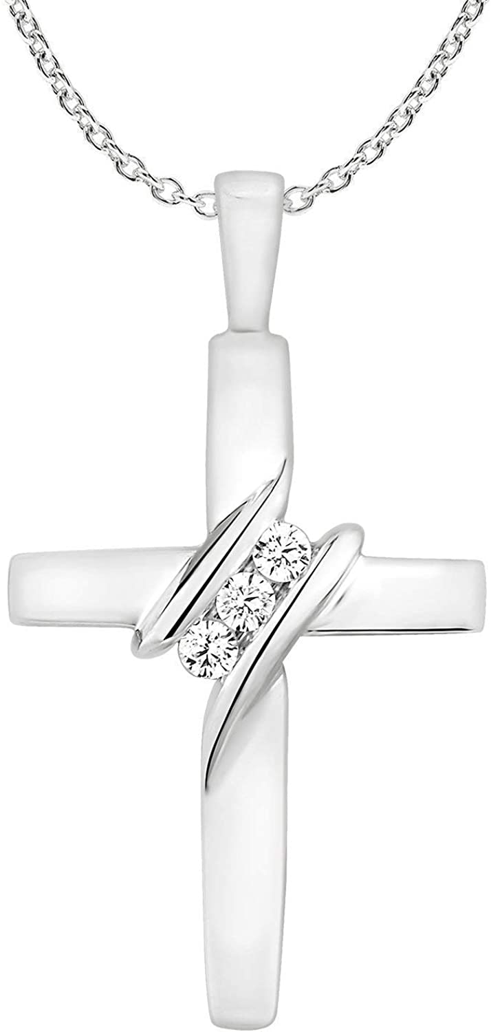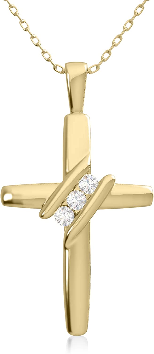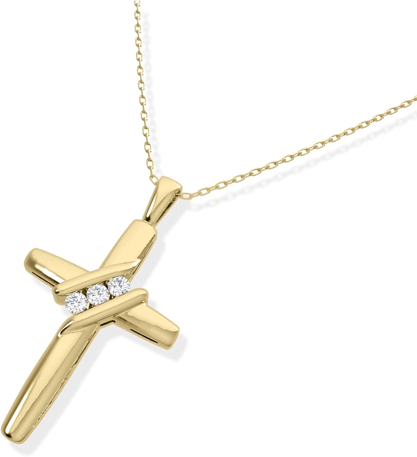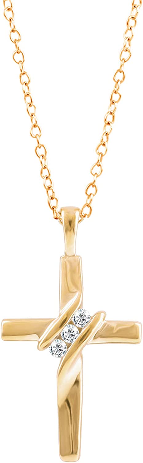10k Diamond Three-Stone Cross Pendant Necklace Religious Jewelry (0.05cttw, I-J/I2-I3) 18"