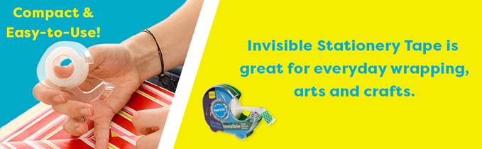 Seal-It invisible stationery tape with matte finish is perfect for the office and home use. The patented press N' Cut dispenser offers 1000 inches of invisible tape with our exact cut technology. This technology allows you to cut off the exact amount of tape needed avoiding wastage. The tape unwinds smoothly while using for everyday packing, wrapping or mailing. Frosted finish on the roll, but invisible on paper. Perfect for indoor and outdoor use, also ideal for everyday packaging or arts and crafts. You can write on it with pen, pencil or marker. The tape cuts well on any metal blade dispenser.
