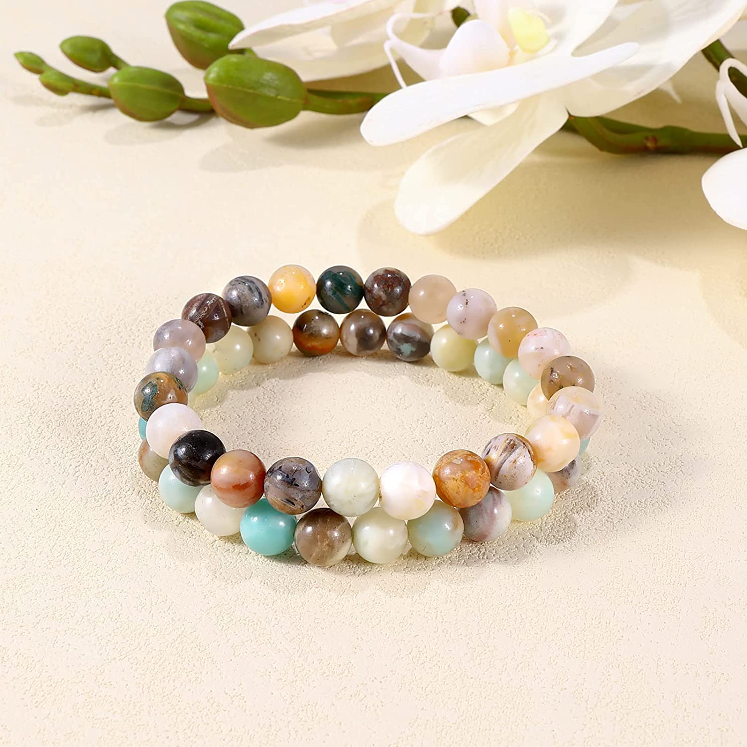 Bivei Natural Gem Semi Precious Reiki Healing Crystals Handmade 8mm Round Beads Stretch Bracelet