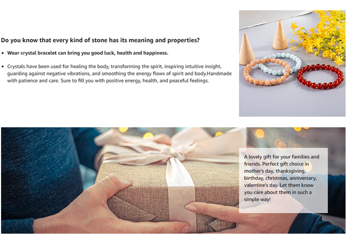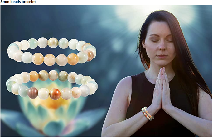 • Quality Handmade bracelet, no metal, good for sensitive skin. Round bead size is about 8mm, Bracelet length is about 6.8 inches to 7.2 inches, 23pcs beads each strand.
