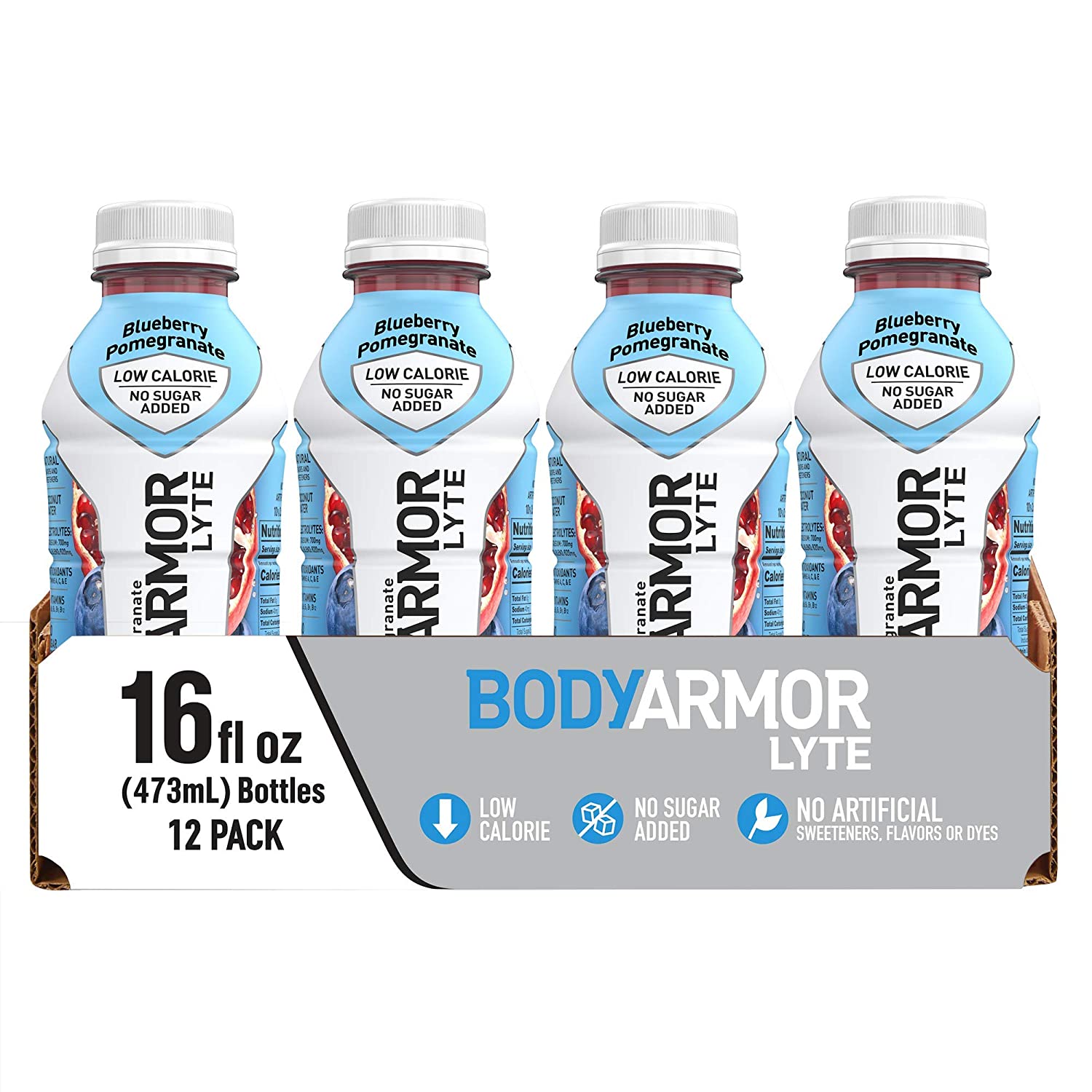 BODYARMOR LYTE Sports Drink Low-Calorie Beverage, Blueberry Pomegranate, Natural Flavors With Vitamins, Potassium-Packed Electrolytes, Perfect For Athletes, 16 Fl Oz (Pack of 12)