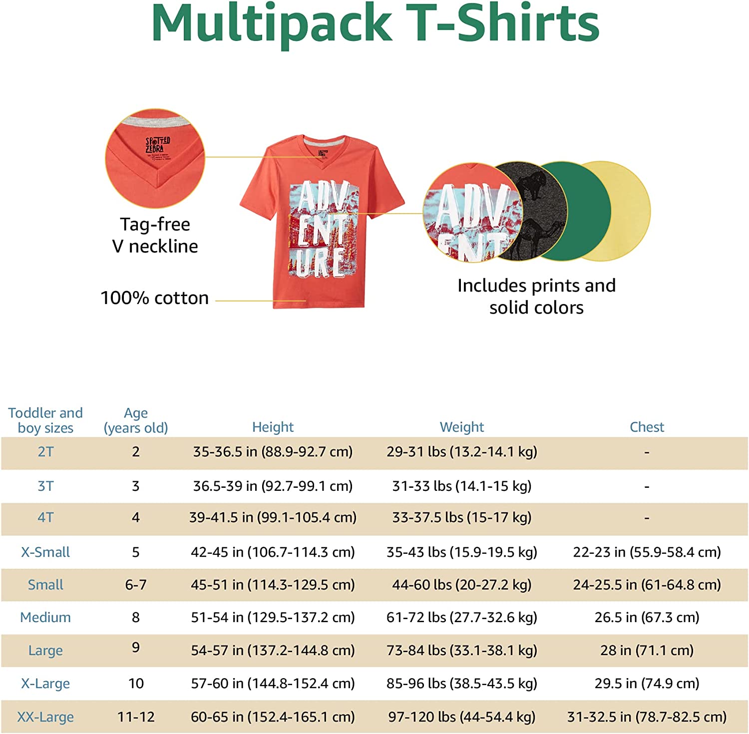 Amazon Essentials Boys and Toddlers' Short-Sleeve V-Neck T-Shirt Tops (Previously Spotted Zebra), Multipacks