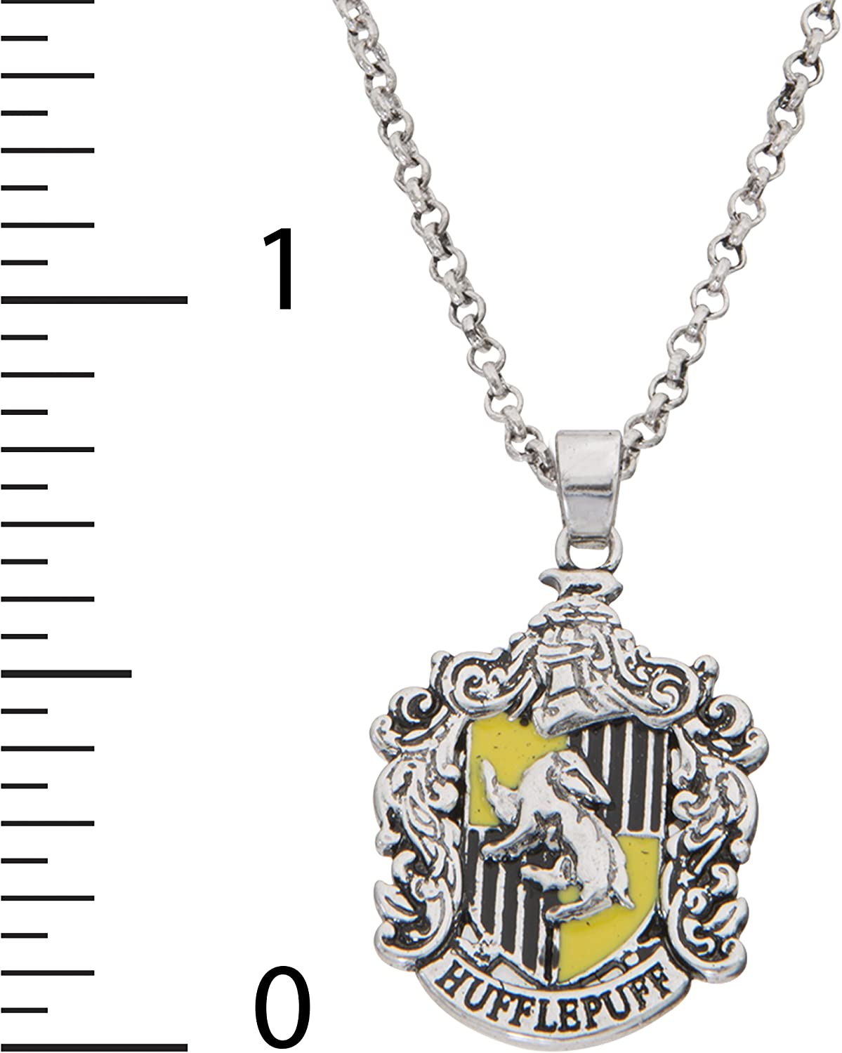 • Officially Licensed Harry Potter Jewelry; Silver Plated Hufflepuff House Pendant Necklace