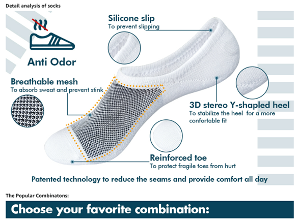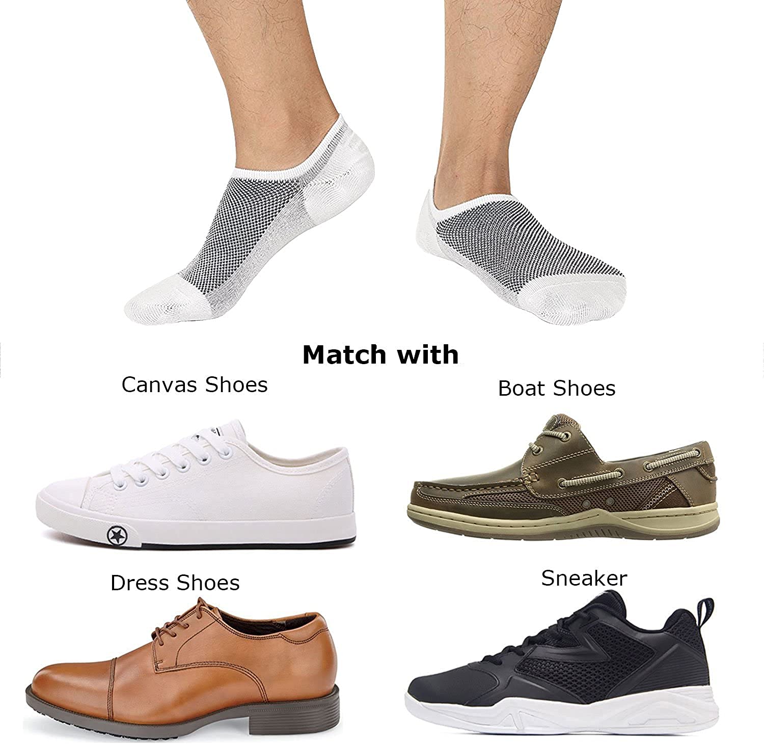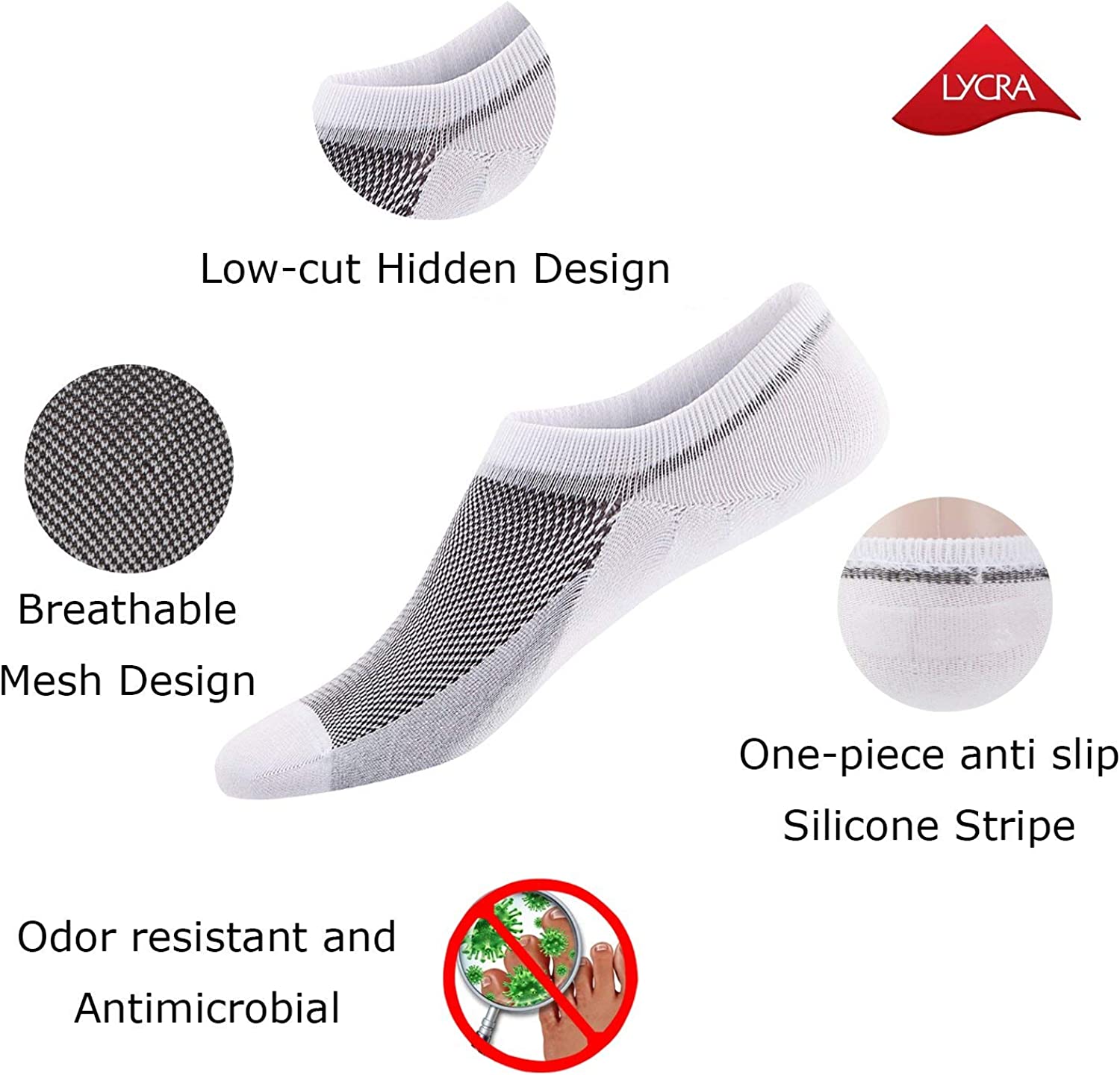 • No show and non slip: Low cut on the top makes your feet completely invisible in sneaker and some low cut style shoes. Anti-slip silicone in heel prevents socks from sliding down.