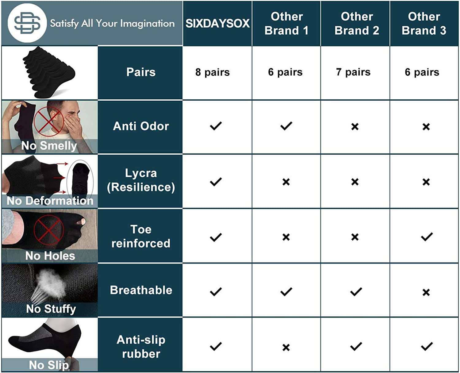 • High quality material: SIXDAYSOX mens no show socks are made of 75% cotton,22% Nylon, 3% spandex. Hand washing is recommended.