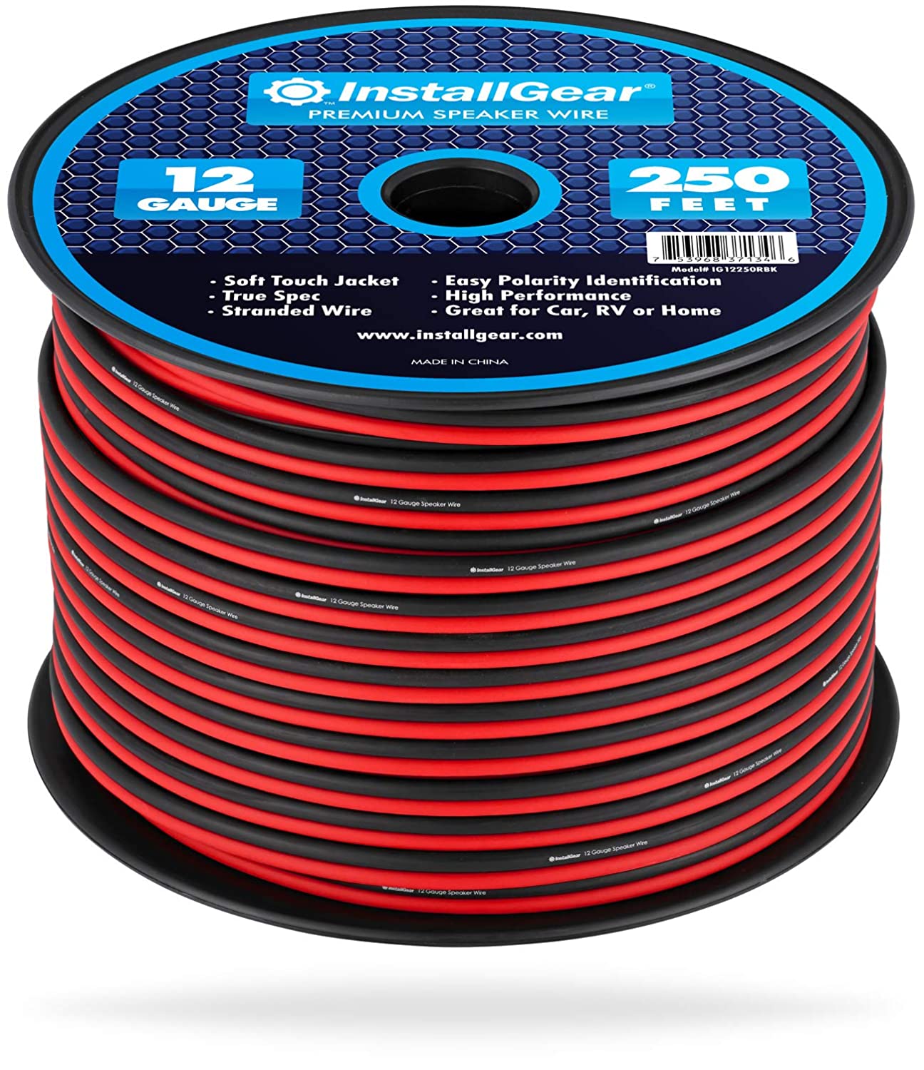 • 100-FEET (30.48m) [ RED/BLACK 12 GAUGE SPEAKER WIRE ] - The lower the gauge number, the thicker the wire. Thicker wire presents less resistance to current flow.