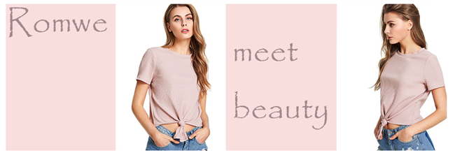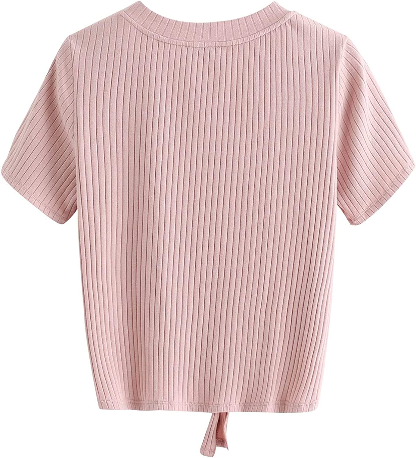 Romwe Women's Cute Knot Front Solid Ribbed Tee Crop Top T-Shirt
