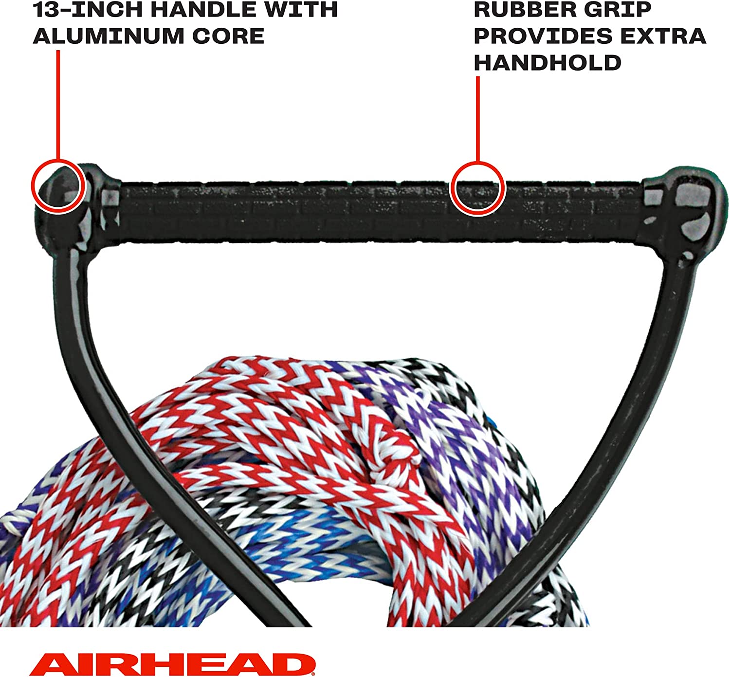 • Premium water ski tow rope features a comfortable grip 12-inch aluminum core handle with molded finger protectors, so you’ll always be able to hang on tight with ease