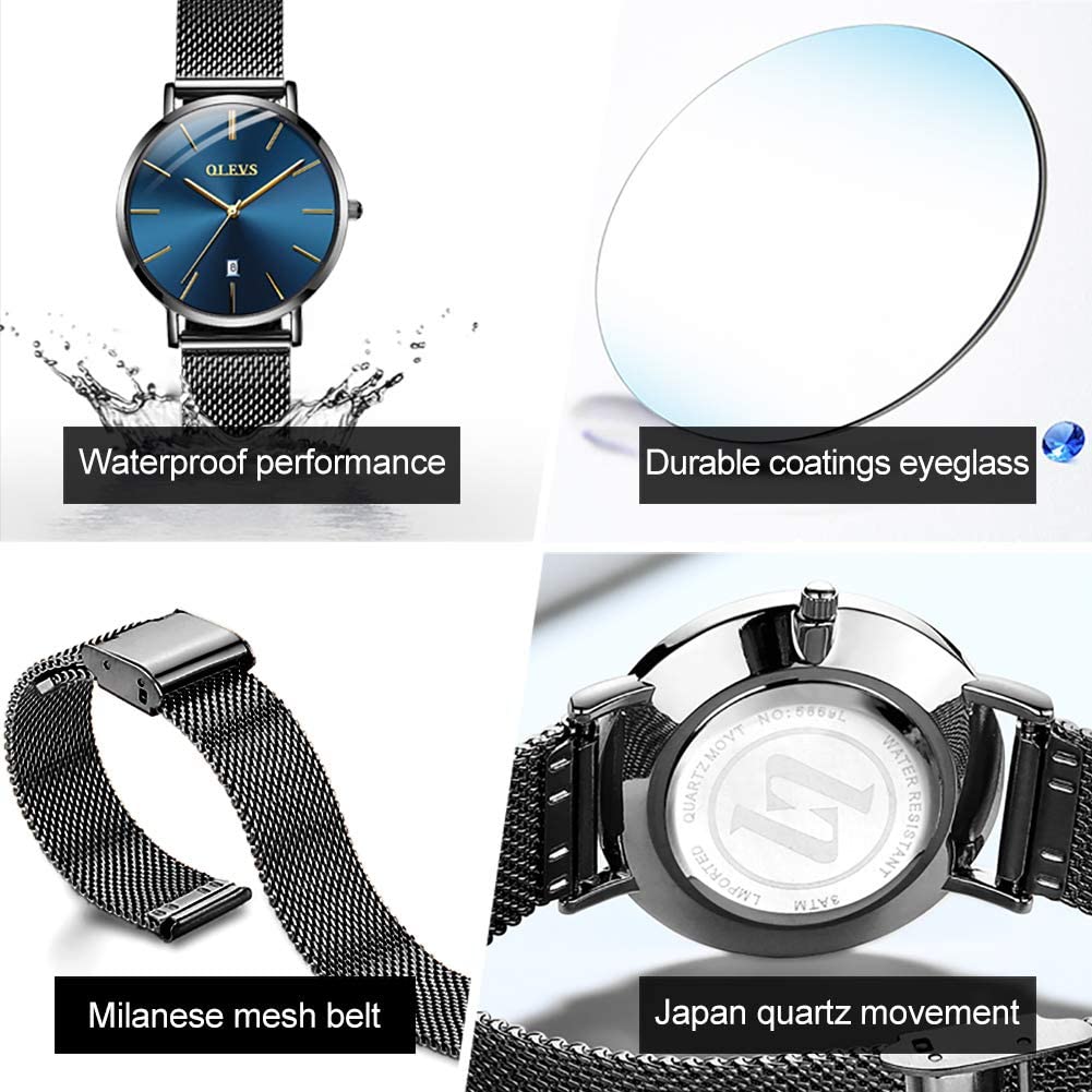 • 【FUNCTION】?.Olevs watch women,Unique Classic and Exquisite Comfortable Mesh Belt Adjustable, Accurate and Easy-to-Read Calendar, And Simple and Luxurious Appearance, You Can Freely Match Clothing and Attend Any Party Any Event,I Believe Can Make You Confident And Beautiful, Help You Plan and Finish Your Work Better.30M Waterproof Support for Hand Washing, Rain, Sailing And Water Sports, Swimming And Bathing In Cold Water, Please Don't Press Any Button Underwater.Watches 2 Years Warranty