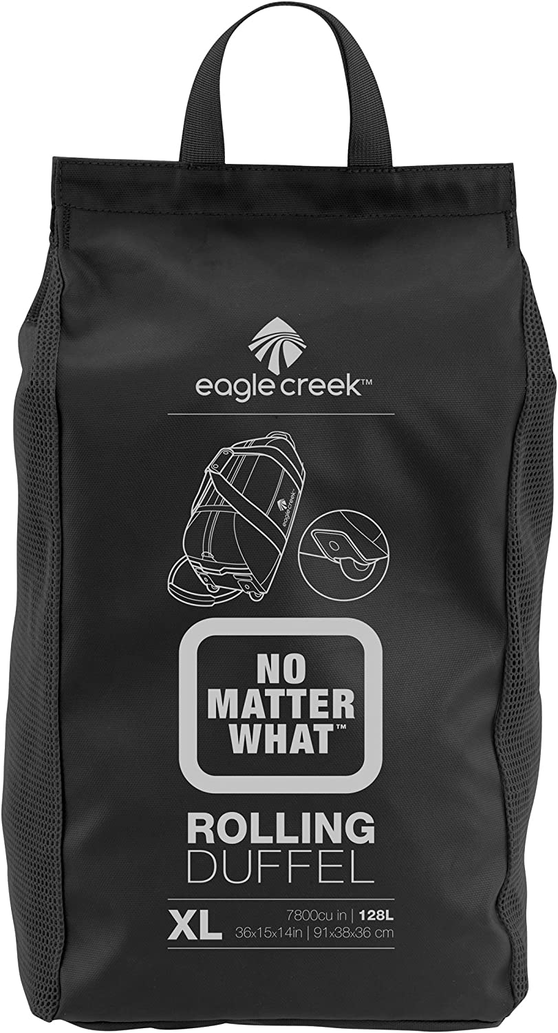 Eagle Creek No Matter What Rolling Duffel Bag XL - Featuring Durable Water-Resistant Fabric, Bar-Tacked Reinforcement, and Heavy Duty Treaded Wheels, Black - X-Large