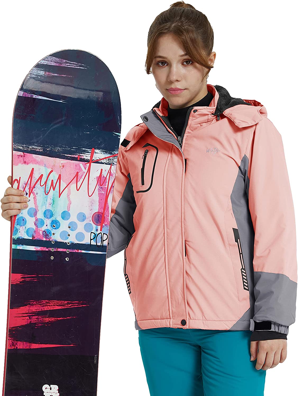 Keep The Cold & Snow Out - This fleece-lined snowboarding for girls is the ideal choice for keeping your kids warm and protected from harsh winds and snow. The hooded fleece ski jacket for girls features adjustable cuffs with thumbhole, detachable fleeced hood and wide collar, all designed to keep cold air and snow out and warmth in.