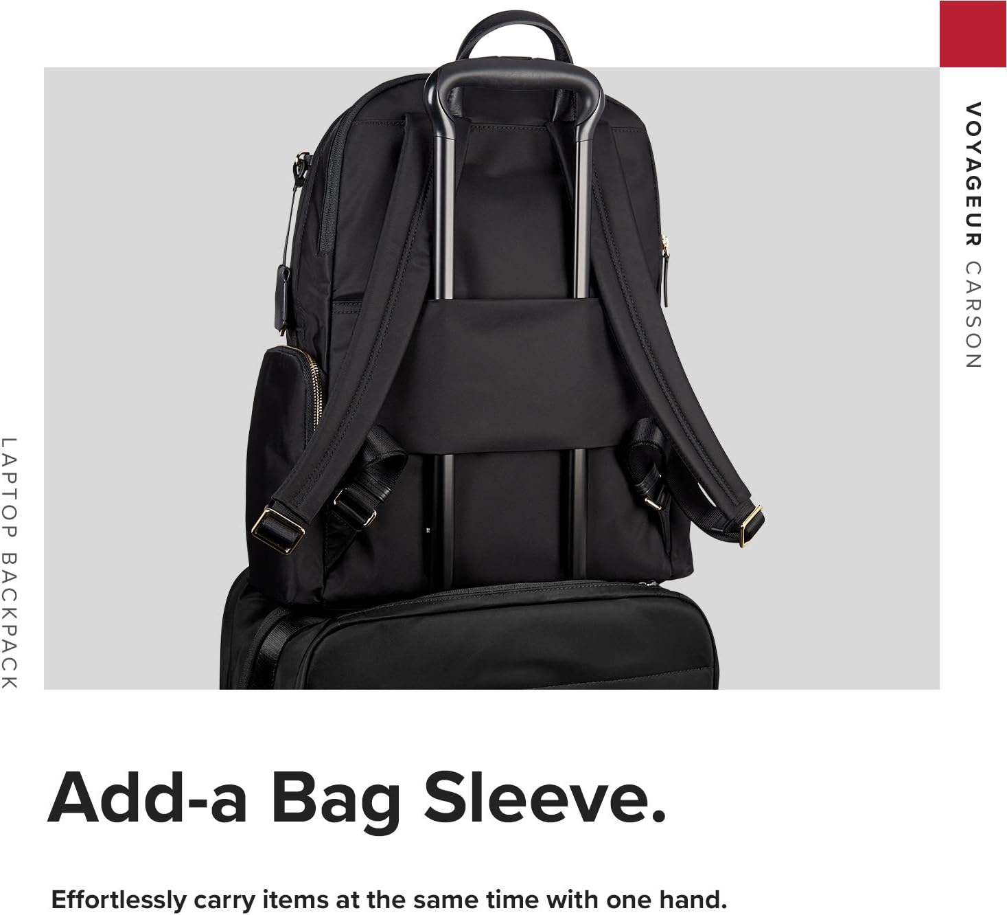 EXTERNAL FEATURES: Double-zip entry to main compartment, double-zip entry to front U-zip pocket, zip entry to laptop compartment, front straight pocket with locking zipper pull, side zip pocket, side zip water-resistant water bottle pocket, quick-access phone pocket with magnetic snap, leather top handle, monogrammable detachable leather dangler/key ring, Add-a-Bag sleeve, padded adjustable shoulder straps