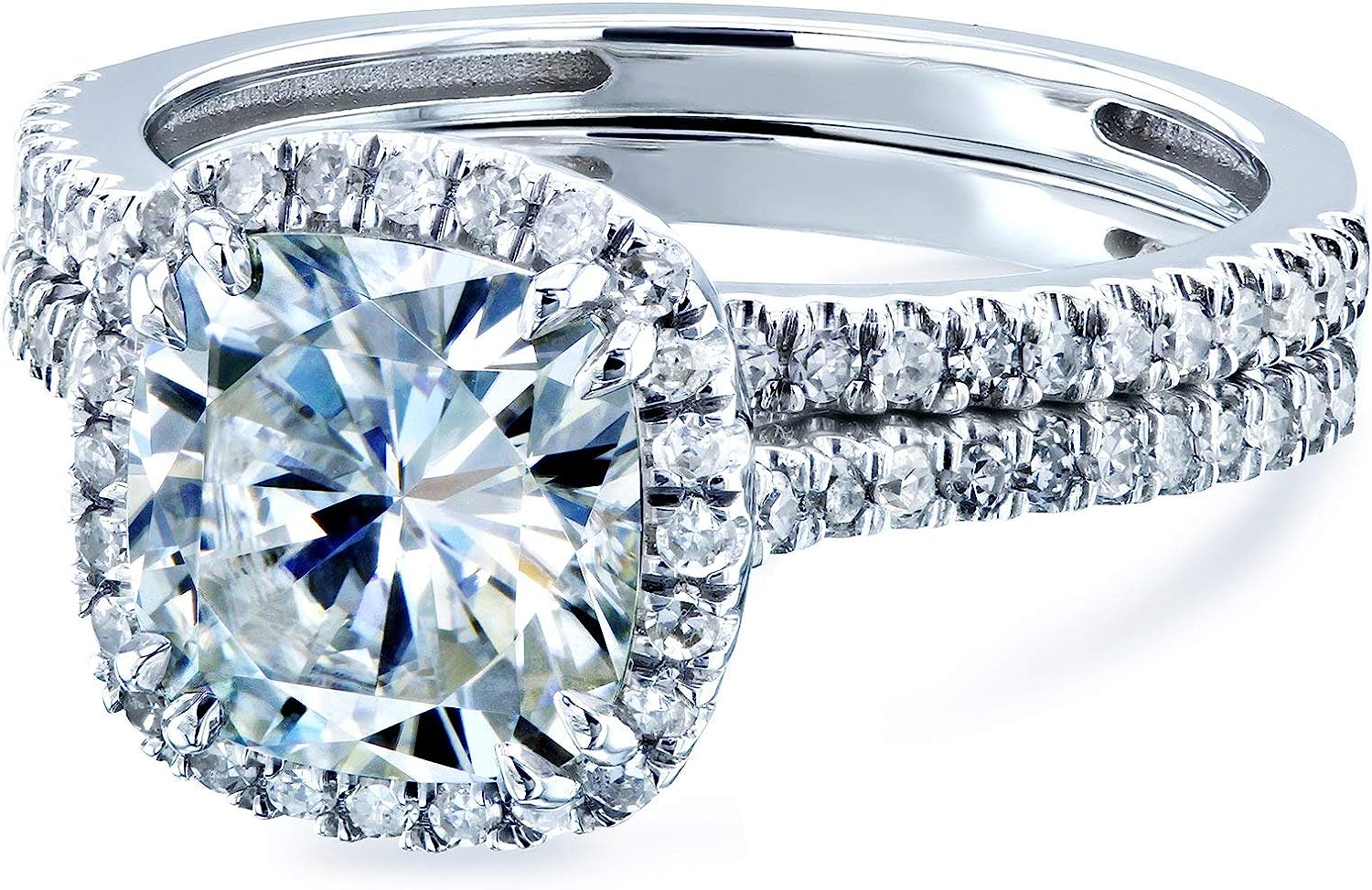Kobelli Cushion Brilliant Moissanite Halo Bridal Wedding Rings Set 2 3/8 CTW 14k White Gold