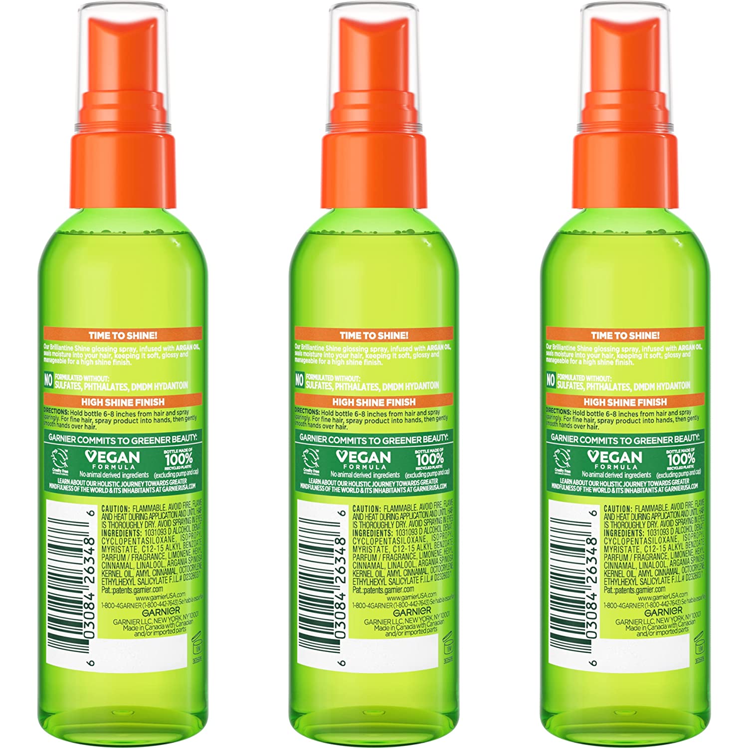 Garnier Fructis Style Brilliantine Shine Glossing Spray for High Shine Finish, Argan Oil, 3 Fl Oz, 3 Count (Packaging May Vary)