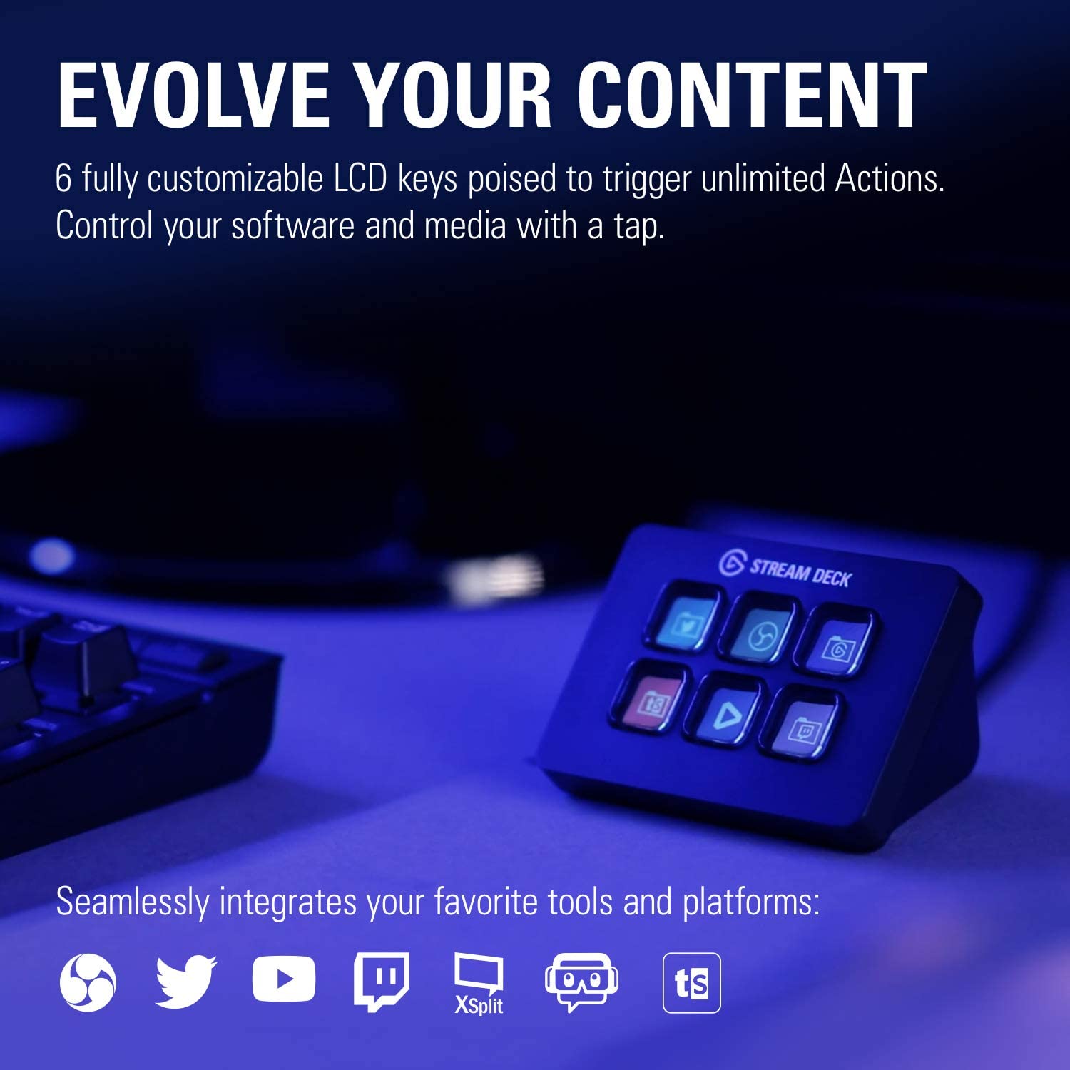 Elgato Stream Deck Mini – Compact Studio Controller, 6 macro keys, trigger actions in apps and software like OBS, Twitch, YouTube and more, works with Mac and PC