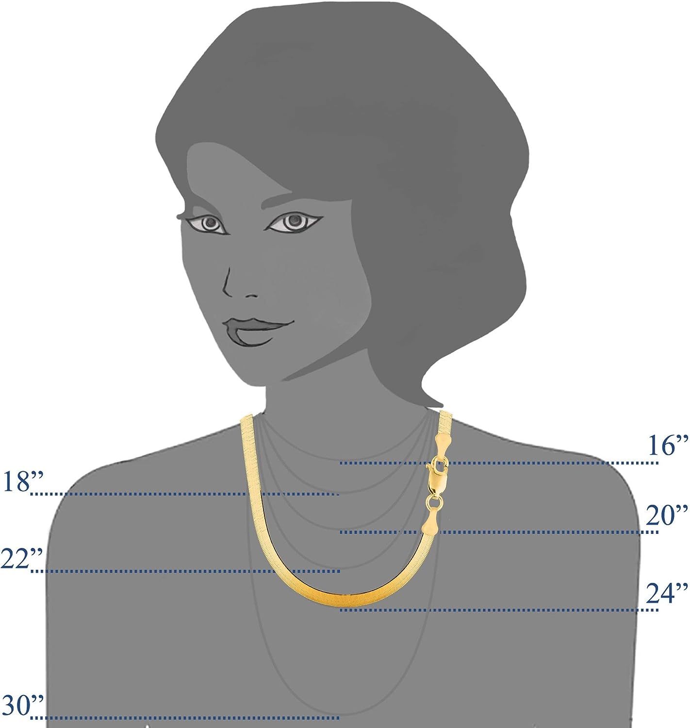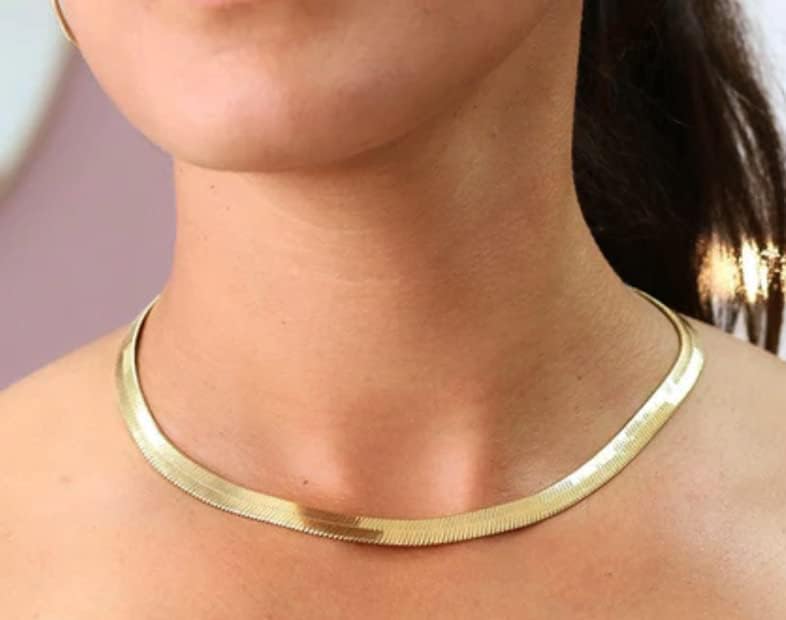 • This herringbone style chain necklace is good for wearing it alone or with pendants. The necklace has a high polished finish that give the necklace a yellow shiny golden look. The necklace will not change any colors and will be fine when wearing it on water.