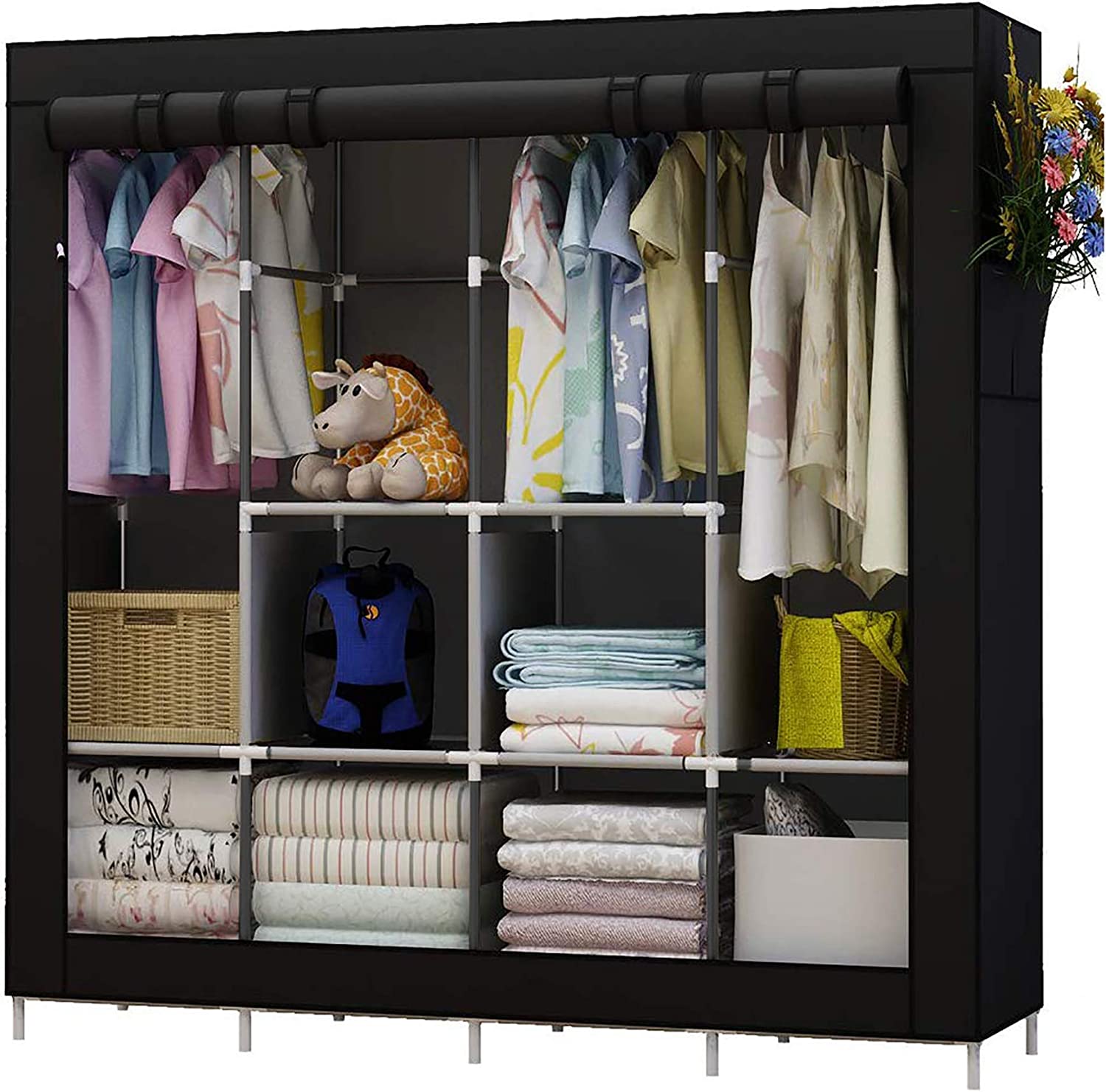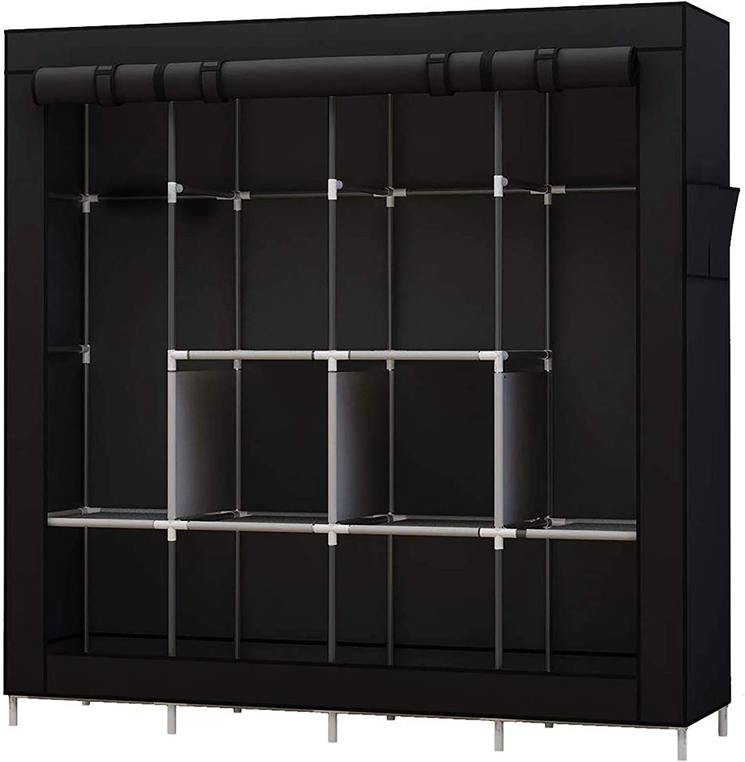 UDEAR Portable Closet Large Wardrobe Closet Clothes Organizer with 6 Storage Shelves, 4 Hanging Sections 4 Side Pockets,Black
