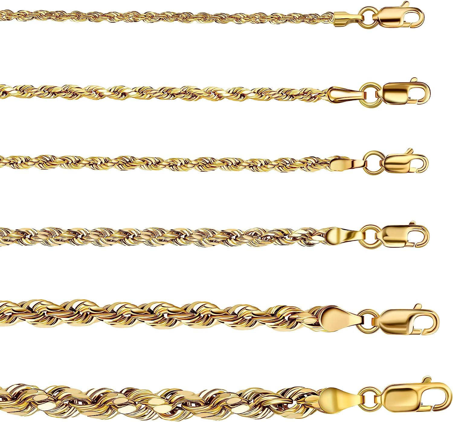 SAFE-TO-WEAR 100% HYPOALLERGENIC: Our jewelry is made of lead and nickel-free materials, these durable, high-quality 10k gold rope chains are safe even for sensitive skin, and won't cause rashes or breakouts.