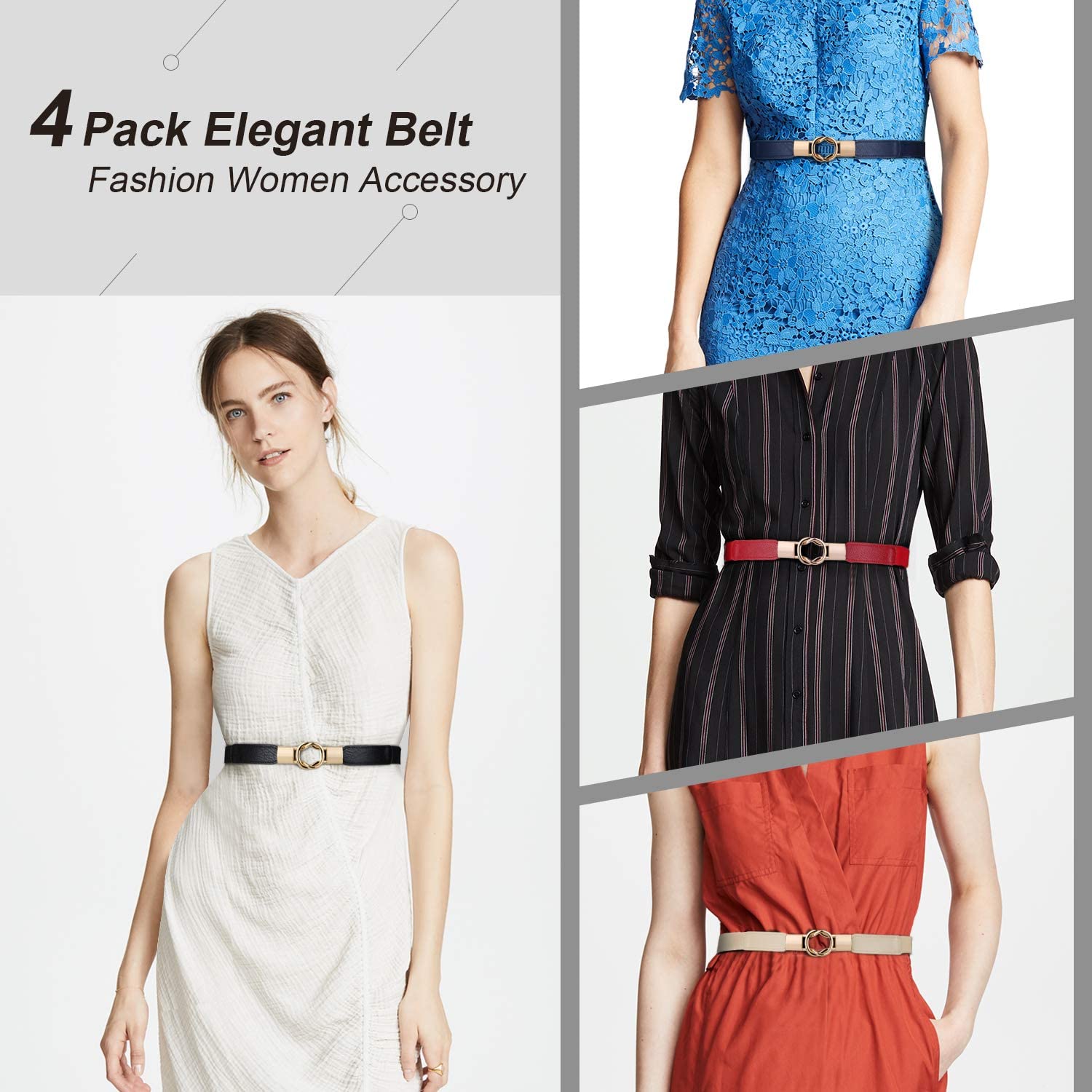 ✨ Gift belt --- The thin belts are sold in 4 packs that could be shared with other women, it’s really a great set of women belts as gift for your mom,wife, girlfriend, daughter and sisters on birthday ,Valentine's Day, Mother's Day,Thanksgiving Day,Christmas,and anniversary.