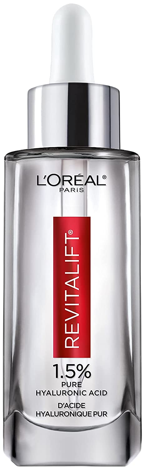 L’Oreal Paris 1.5% Pure Hyaluronic Acid Serum for Face with Vitamin C from Revitalift Derm Intensives for Dewy Looking Skin, Hydrate, Moisturize, Plump Skin, Reduce Wrinkles, Anti Aging Serum, 1 Oz