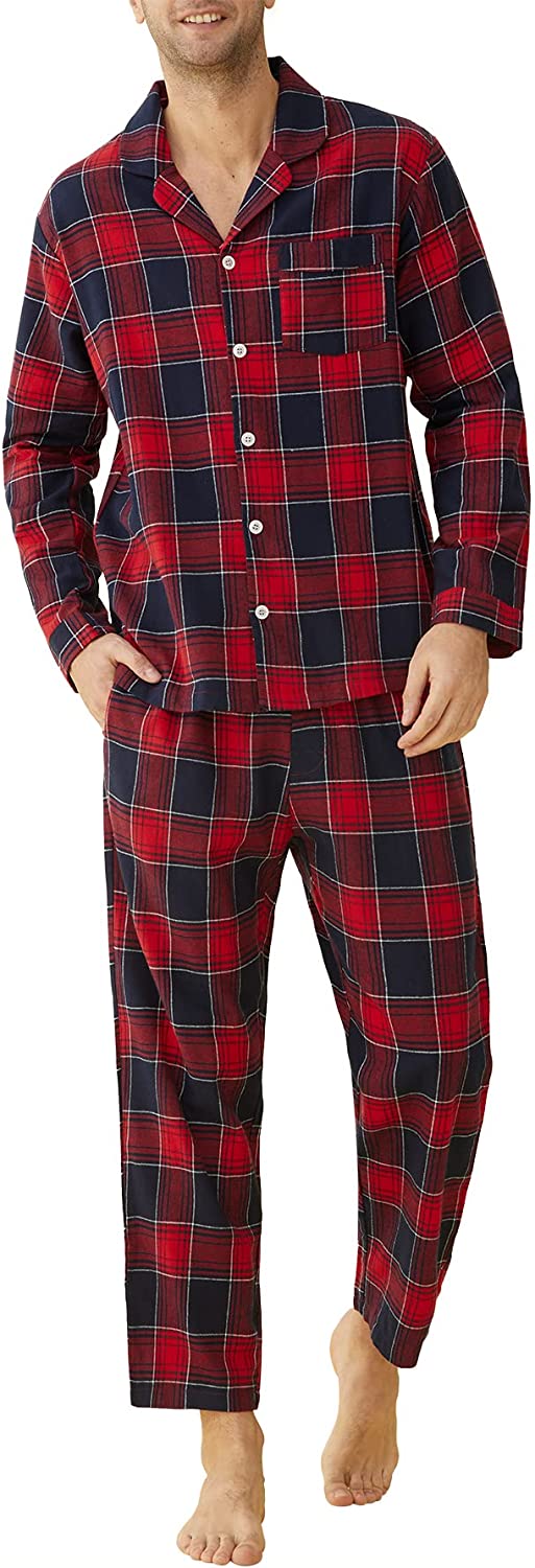 Latuza Men’s Cotton Flannel Pajama Set Plaid Sleepwear