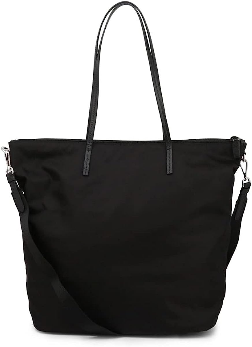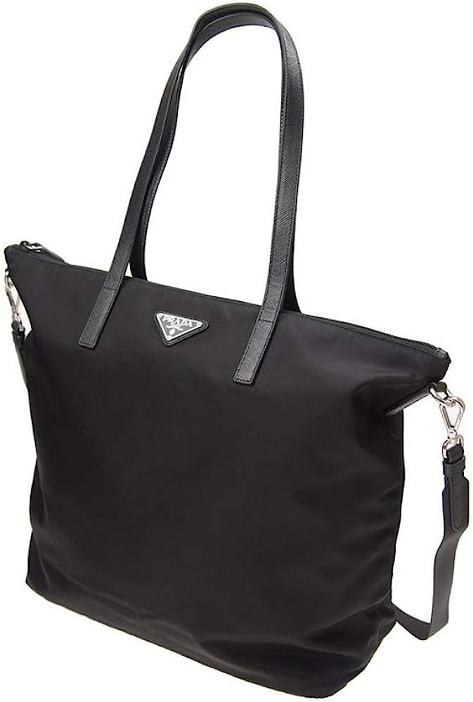 • This nylon Prada convertible shopping tote is the perfect everyday bag. It has secure zipper closure on the top and spacious inside storage gives plenty of space for anything you may need to carry in your bag for a long day out.