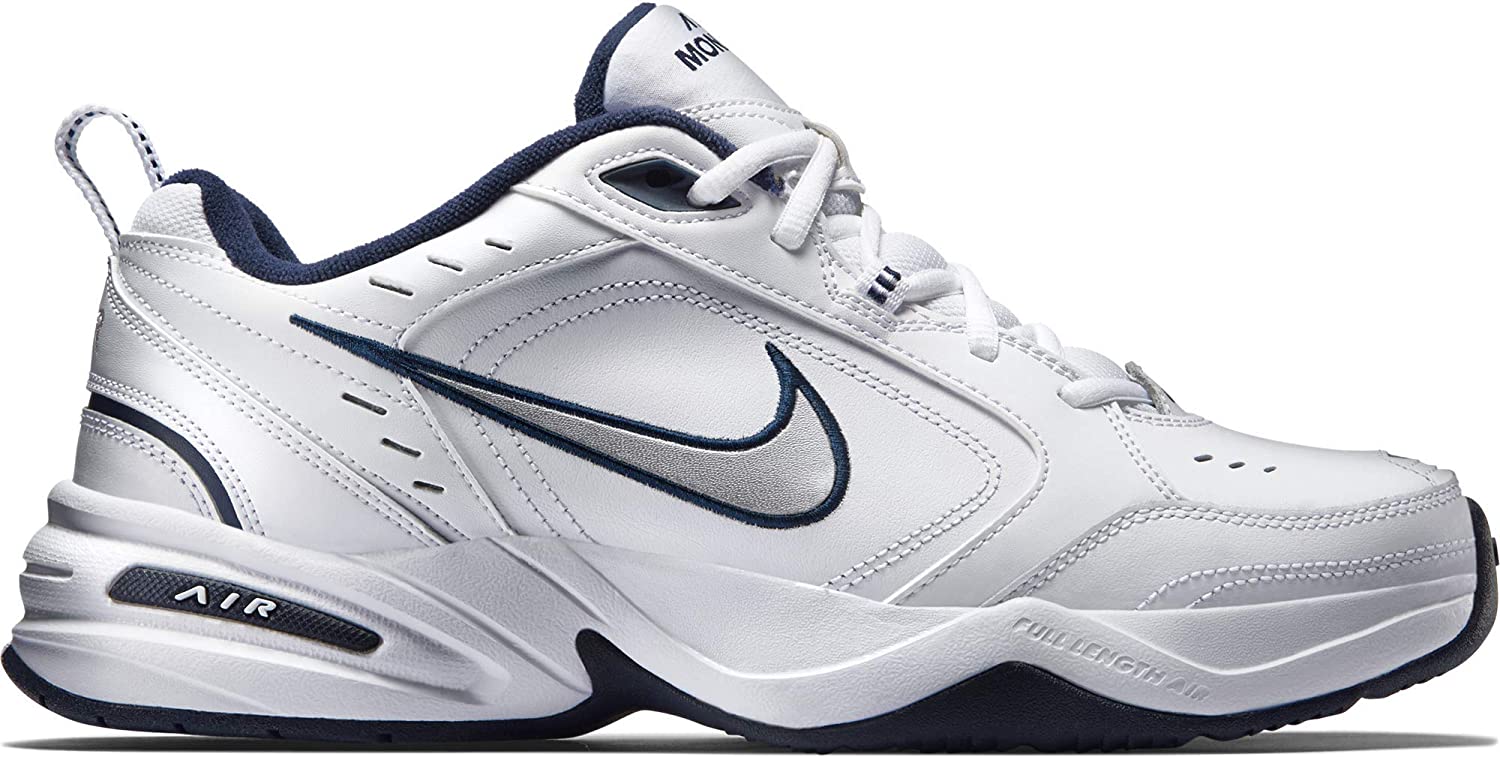 Men's Nike Air Monarch IV Training Shoe sets you up for comfortable training with durable leather on top for support. A lightweight foam midsole with a full-length encapsulated Air-Sole unit cushions every stride in the Nike men's shoe.