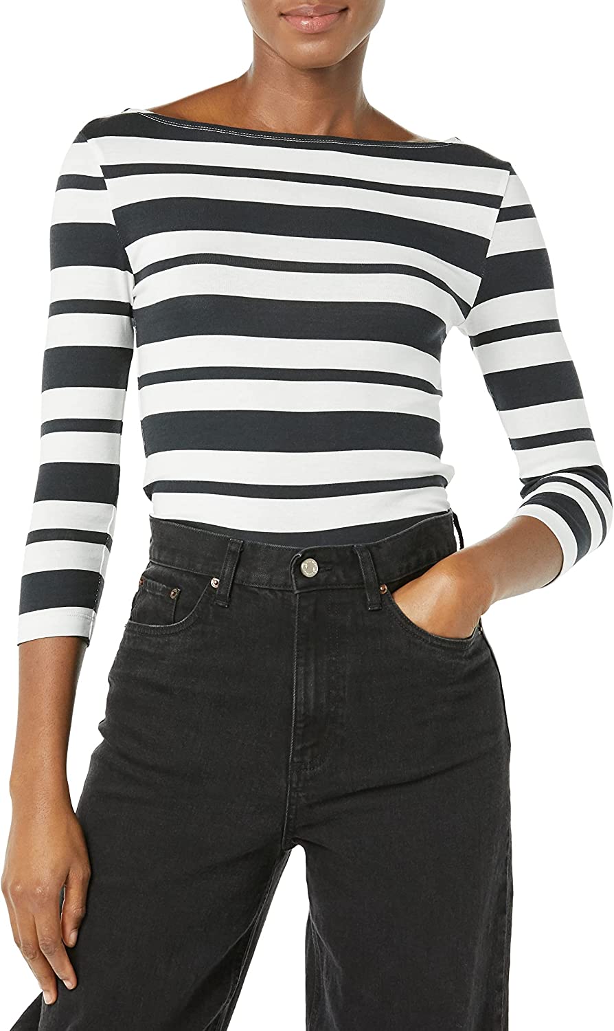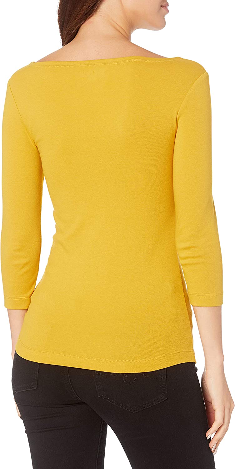 Amazon Essentials Women's Slim-Fit 3/4 Sleeve Solid Boat Neck T-Shirt