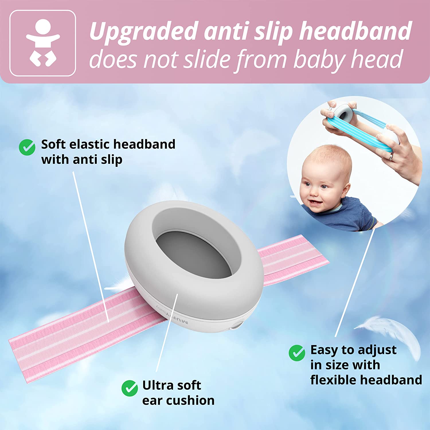 • NO PRESSURE ON FONTANEL | The head of a baby younger than 18 months is extremely vulnerable because of the not yet closed fontanelle. The Muffy Baby is a better choice thanks to its specially designed soft headband. It fits smoothly and without adding any pressure.