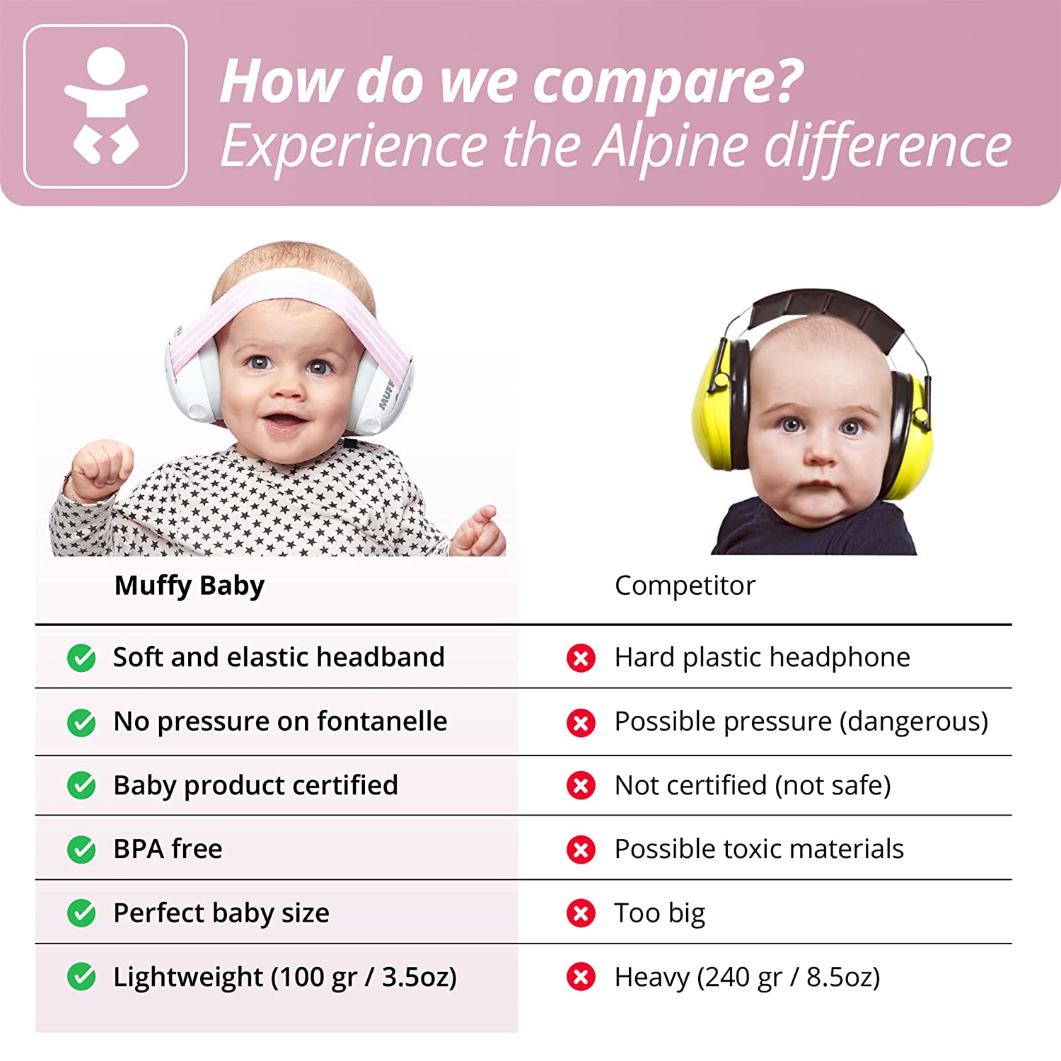• ADJUSTABLE AND SAFE | Alpine Muffy baby and toddler ear protection has a safe and practical design, without any hard parts that can be harmfull or dangerous. Ear caps are made with multiple layers of noise reducing foam and soft padding for good closure. The upgraded headbands are anti-slip, comfortable and easily adjustable.