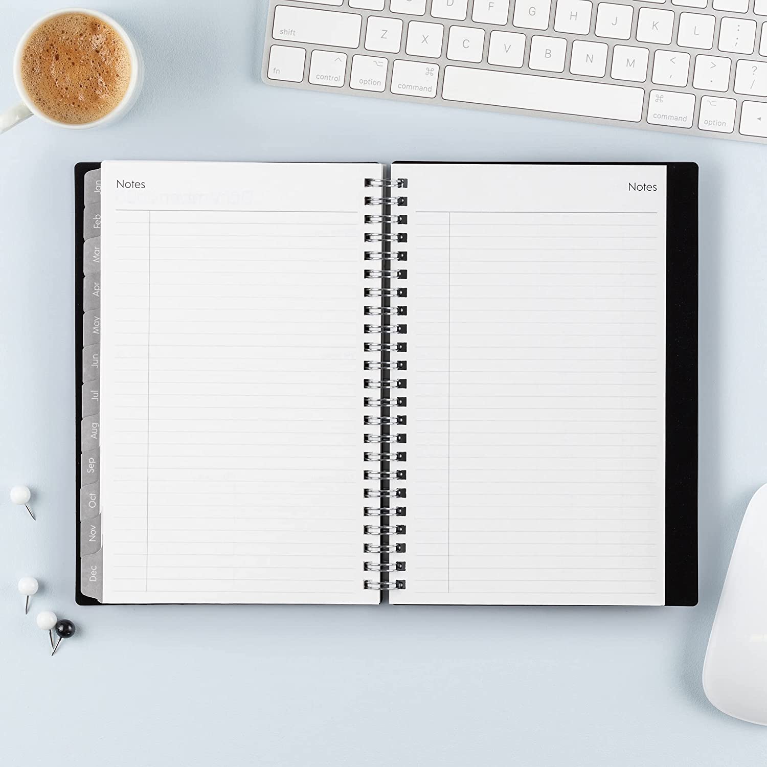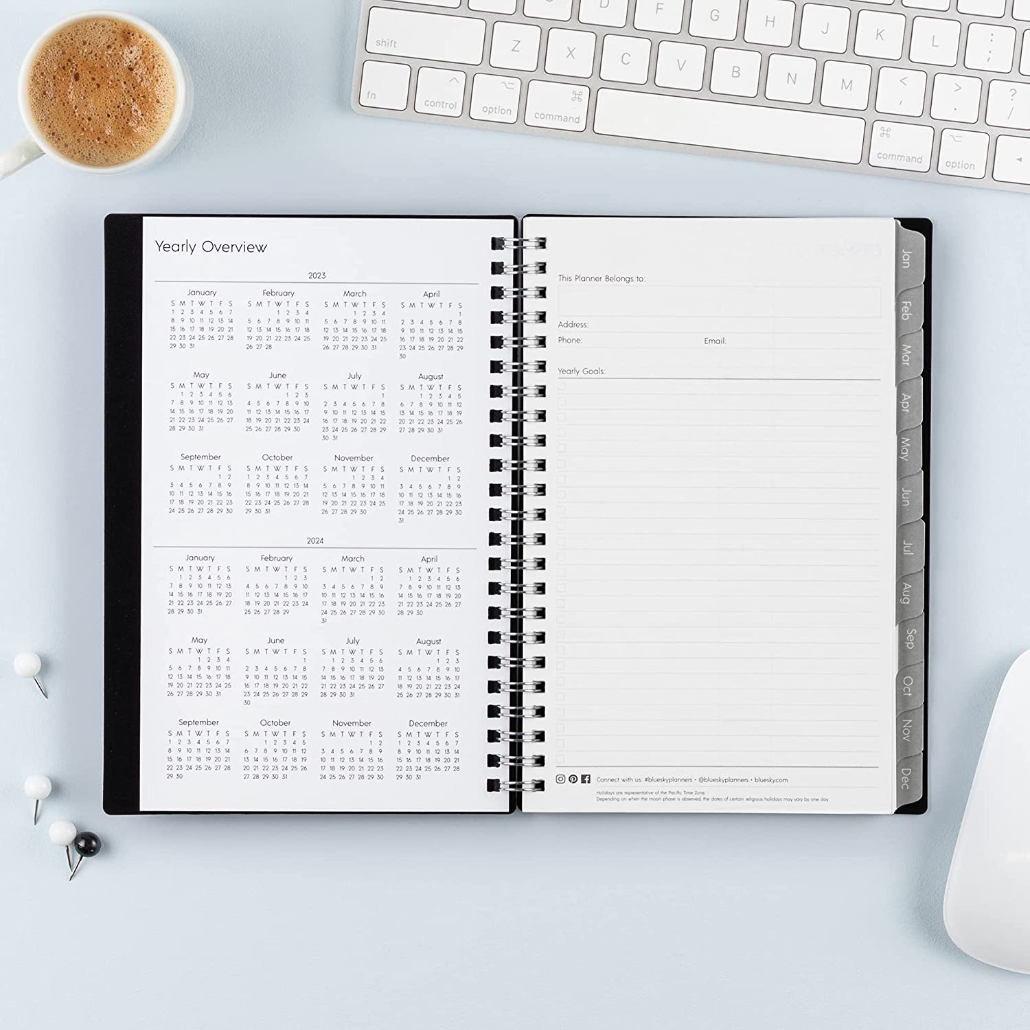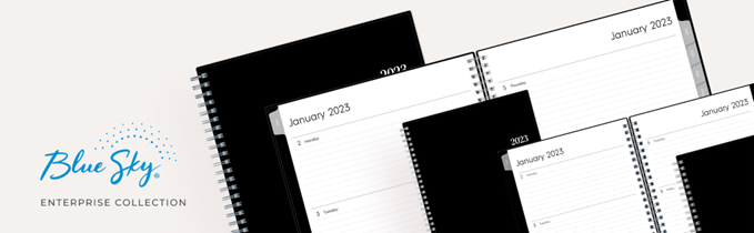 Plan your year in style with the minimalistic design and classic colors of the 2023 calendar year Enterprise collection. This stylish weekly and monthly planner will keep you organized everywhere you go. Simple page designs add a touch of sophistication and offer plenty of room for all of your important information. Designed with practicality and ease of use in mind, this professional agenda's monthly calendar tabs allow for easy access to each month’s plans while weekly views offer ample writing space for detailing each day. High quality white paper provides clean writing space for jotting down your appointments, to-dos and reminders. Use this dated planner to keep track of your appointments, and to write down notes and ideas in one place. Durable coated tabbed dividers are long lasting and make accessing information a breeze. Premium quality covers and twin-wire binding provide reliable durability for daily use. Stay on track throughout the year with this portable 5 x 8 planner dated January 2023 - December 2023. Mix and match with other Enterprise Collection planning products from Blue Sky to organize your daily life.