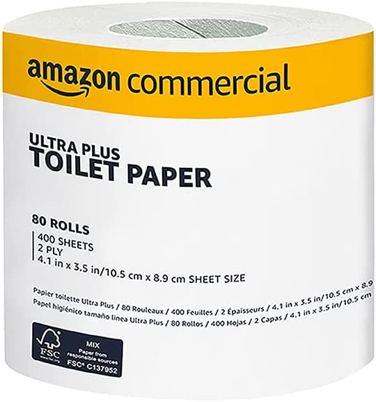 AmazonCommercial 2-Ply White Ultra Plus Individually Wrapped Toilet Paper/Bath Tissue|Bulk|Septic Safe|FSC Certified|400 Sheets per Roll (4.1" x 3.5" Sheet, 80 Count (Pack of 1)