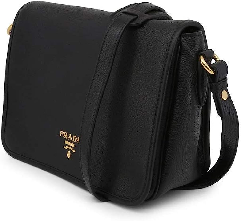 Prada Vitello Phenix Nero Black Pattina Shoulder Messenger Bag 1BD091