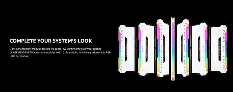 • Two light enhancement modules to fill your empty DDR4 slots, with the same RGB lighting effects of your existing Vengeance RGB Pro Memory modules.