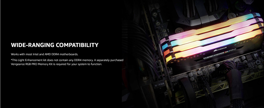 • This kit does not contain any DDR4 memory. A separately purchased Vengeance RGB PRO Memory Kit is required for your system to function.