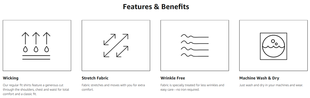 • Wicking: Designed to wick moisture away from the body to help you feel cool and dry. Stretch: Fabric stretches and moves with you for extra comfort. Non-Iron Fabric: Resists wrinkles to keep you looking crisp all day; easy care, no ironing necessary.