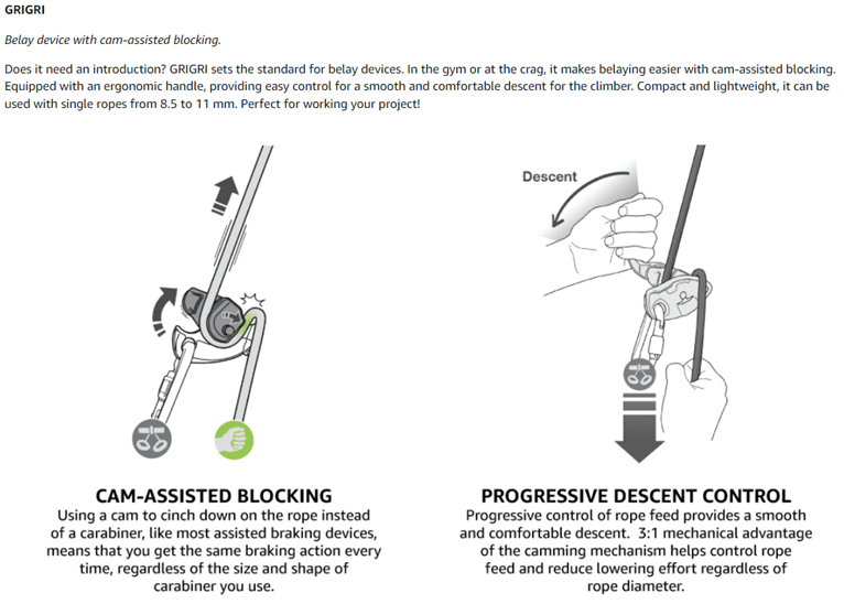 • CAM-ASSISTED BLOCKING: Cam-assisted blocking ensures a comfortable belay—when the climber falls or weights the rope—the cam in the device automatically cinches down to arrest the rope.