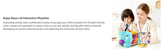 MOM'S PRIORITY CHOOSE:Our safe and durable activity cube was designed for enriching children’s capacities in the safest possible ways. It has smooth edge, round chamfer and non-toxic water-based paint that make the activity cube safe for your toddler. What’s more, it has passed the American ASTM and CPC tests and are 100% in compliance with toy safety standards. We know you only want the best toy for your 1 2 year old boys and girls.