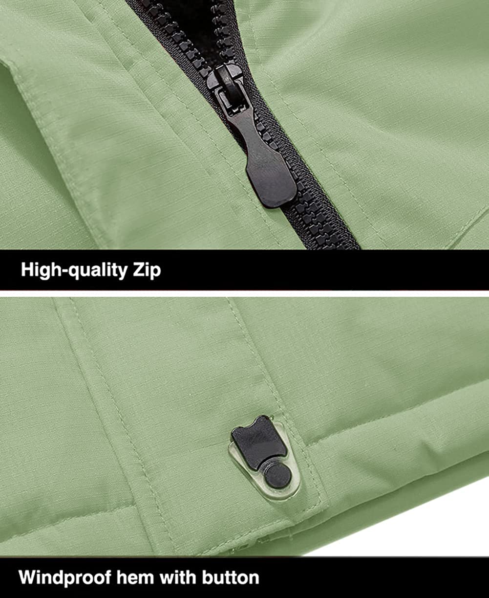 • Windproof: Adjustable cuffs with hooks and loops; Internal drawcord hem, detachable and adjustable storm hood help to keep wind out. Note: Zipper on the Left side