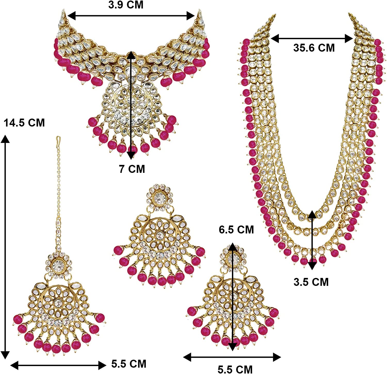 - DIMENSIONS(In Inches): Long Necklace Length - 26", Choker Necklace Length - 10" , Necklace Width - 3", Earring Height - 3", Earring Width - 2.25" , Mang Tika Length - 7" & Mang Tika Width - 2.25"