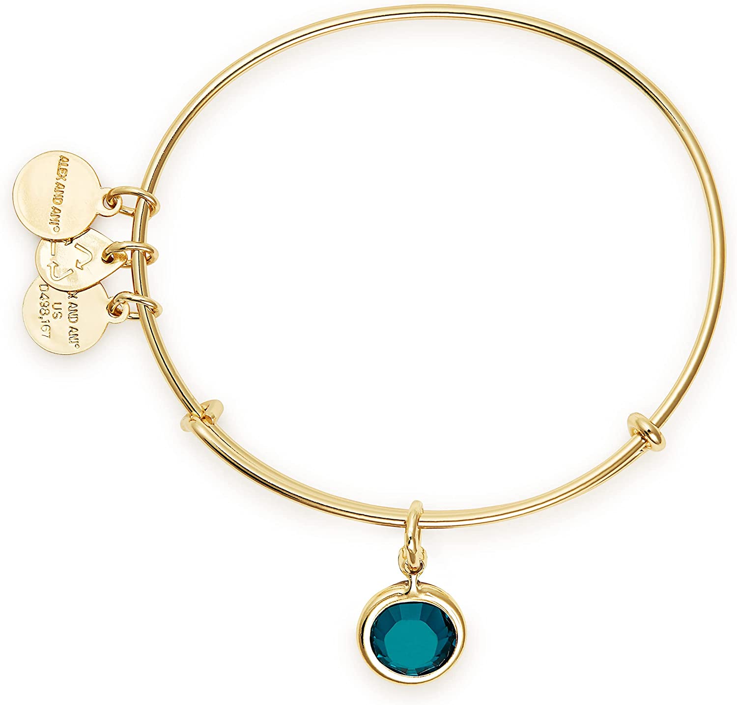 Alex and Ani Birthstones Expandable Bangle for Women, Crystal Charm for Every Month, Shiny Finish, 2 to 3.5 in
