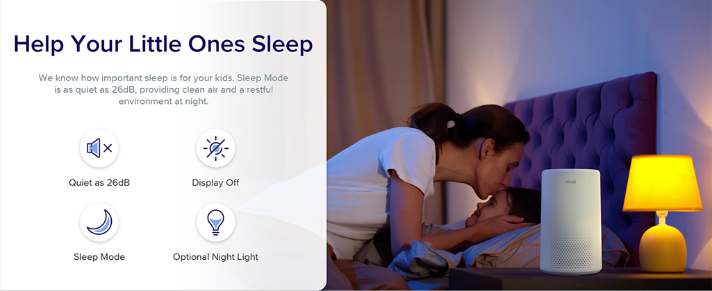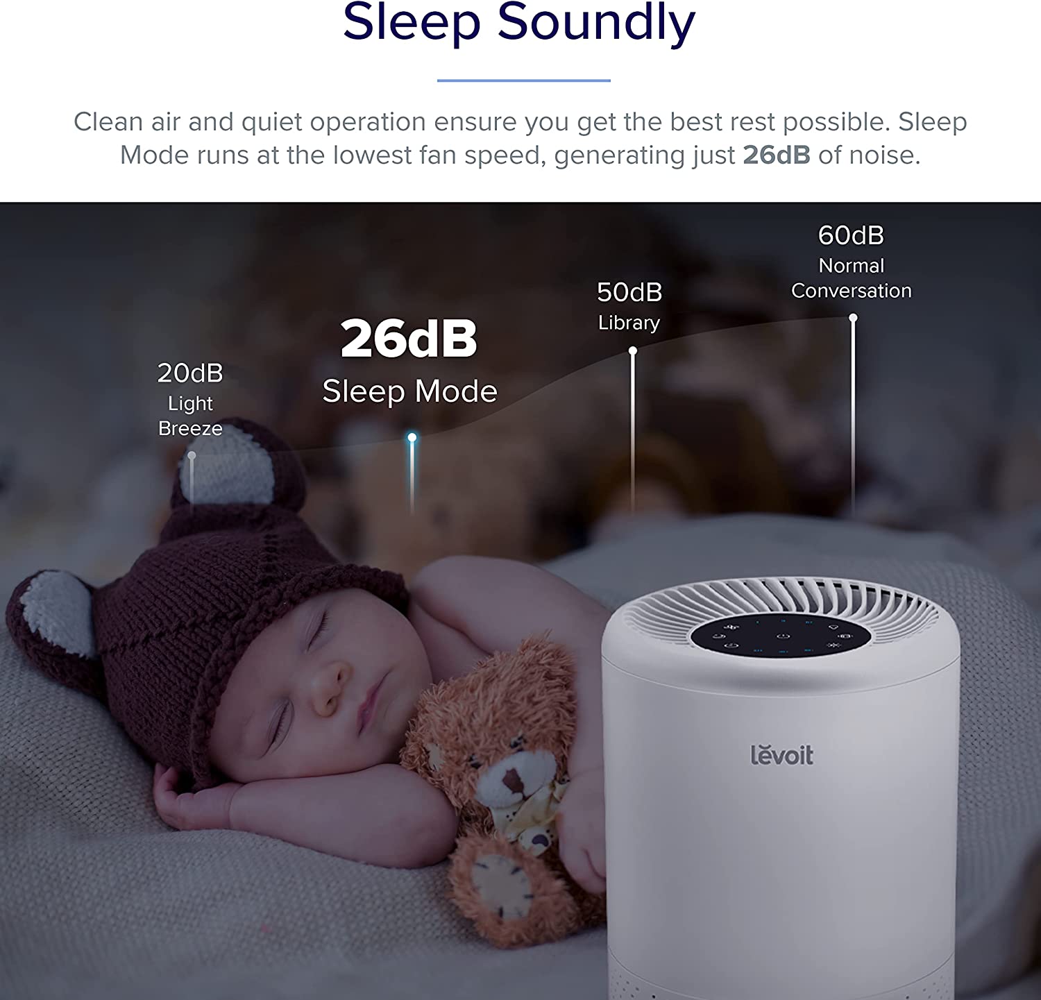 • ULTRA-QUIET: No light, little to no noise, just air purification. Sleep soundly while the air purifier works as quietly as 26dB for light sleepers; Sleep Mode automatically dims display lights and reduces noise levels for uninterrupted rest