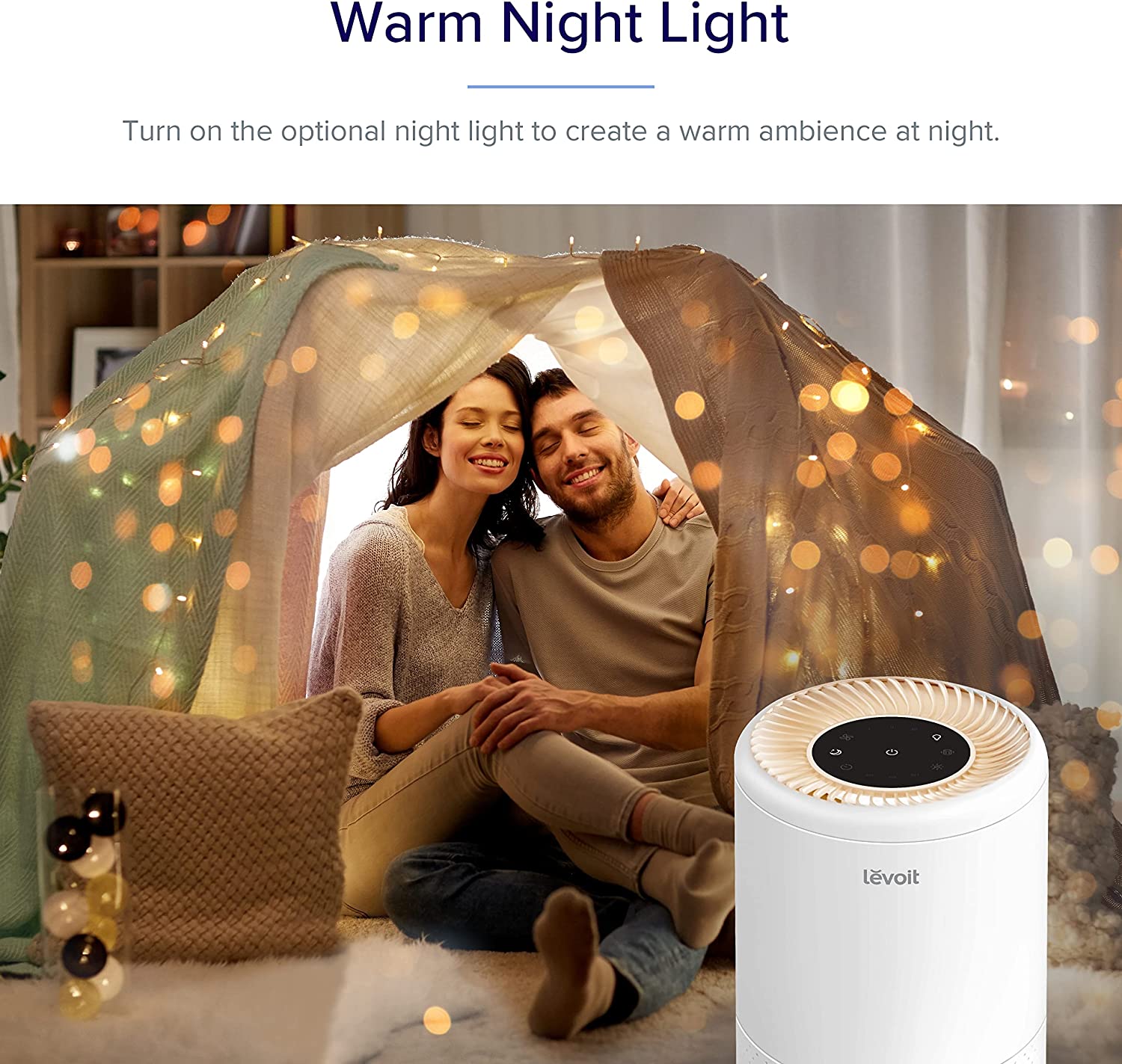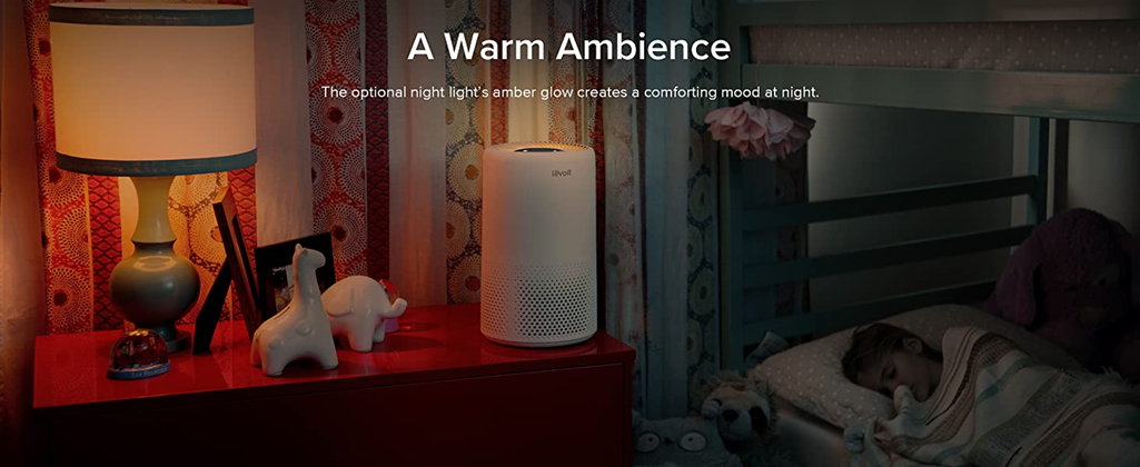 • NIGHT LIGHT: Create a relaxing atmosphere with the air purifier’s night light; With 2 brightness levels, you can control how much light you want for a restful sleep