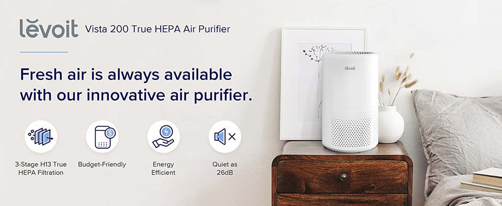 • AFFORDABLE & EFFECTIVE: Let the Vista 200 True HEPA Air Purifier meet your needs at an affordable price; Refresh your air using the 3 fan speeds, Sleep Mode, Check Filter Indicator, Display Off Button, and more