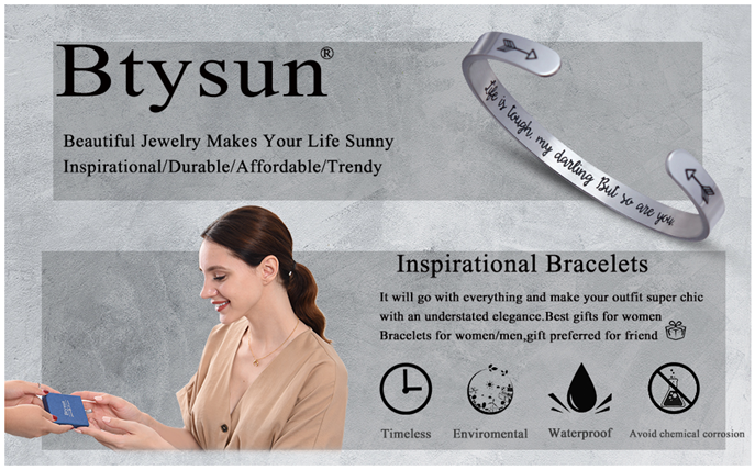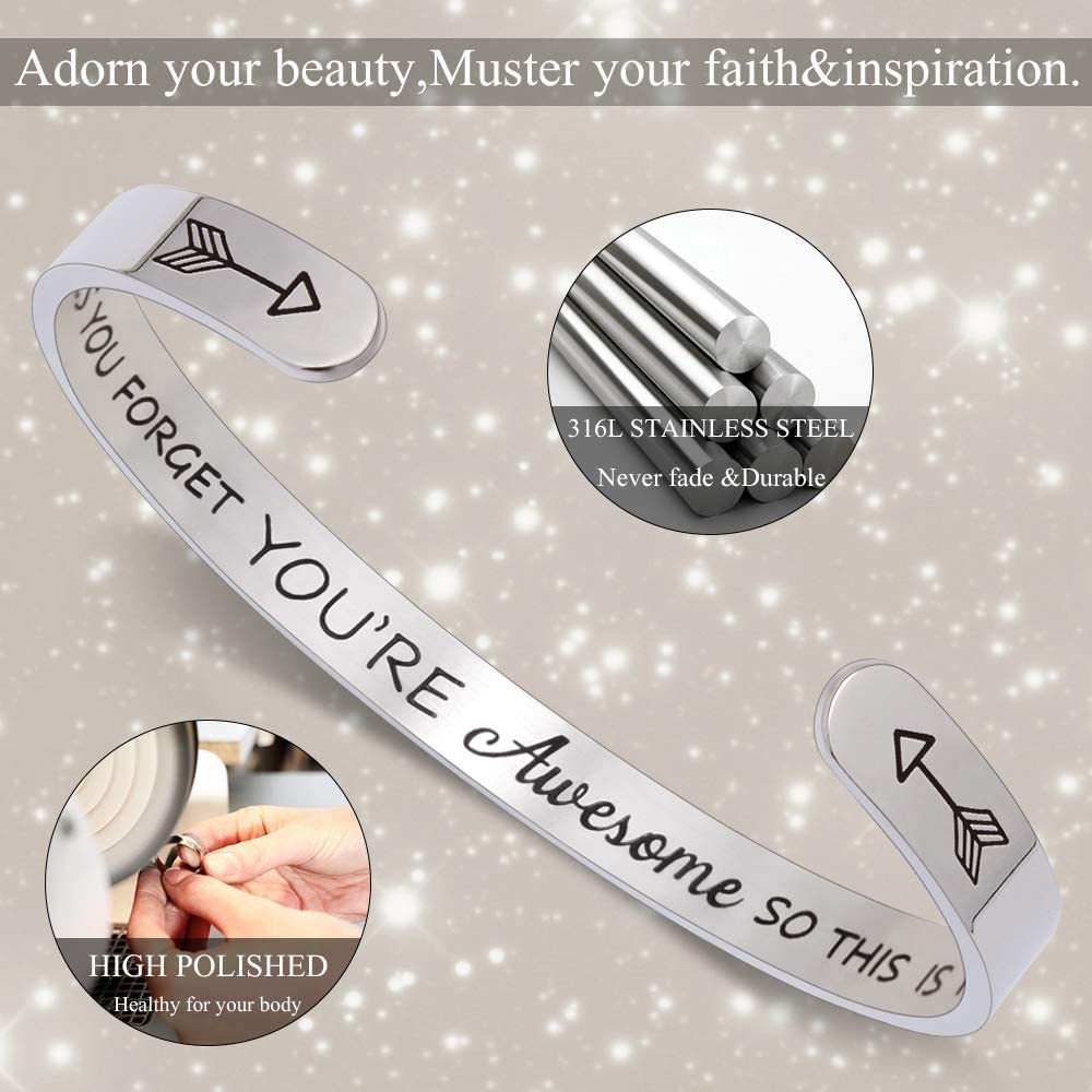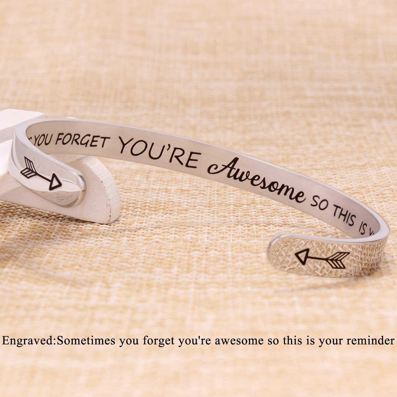 • Meaning:The bracelets for women are engraved inspiratioanl quote.Front arrow signs on ends.You are awesome bracelet, be brave bracelet, uplifting Jewelry,,you got this bracelet,keep going. gifts for her.Bracelets for women,unique gifts for women/girls, friend gifts,friendship bracelets,teen girl gifts.Birthday gifts for women to surprise her.